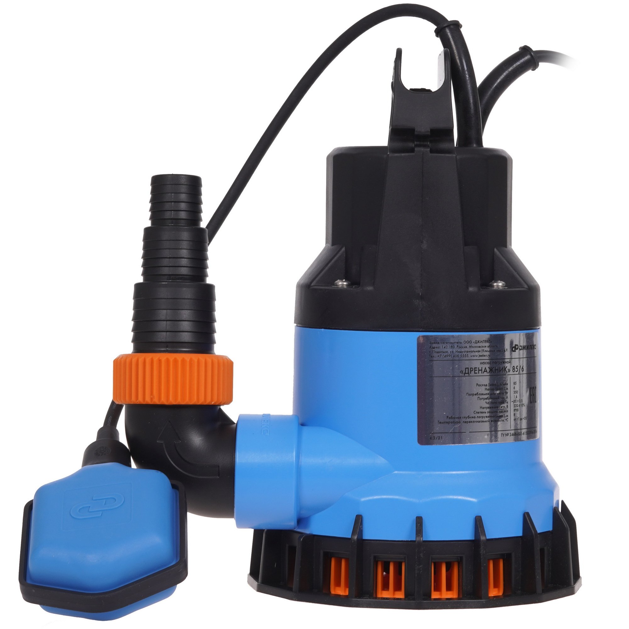 Дренажный погружной электронасос Джилекс 85/6 с нижним забором воды оснащается электродвигателем с потребляемой мощностью 350 Вт, который получает питание от однофазной электросети. Подключение насоса к сети питания осуществляется за счет 5-метрового кабеля. Электроприбор находит применение при откачивании воды из затопленных подвалов и канализационных колодцев и в ряде других ситуаций.