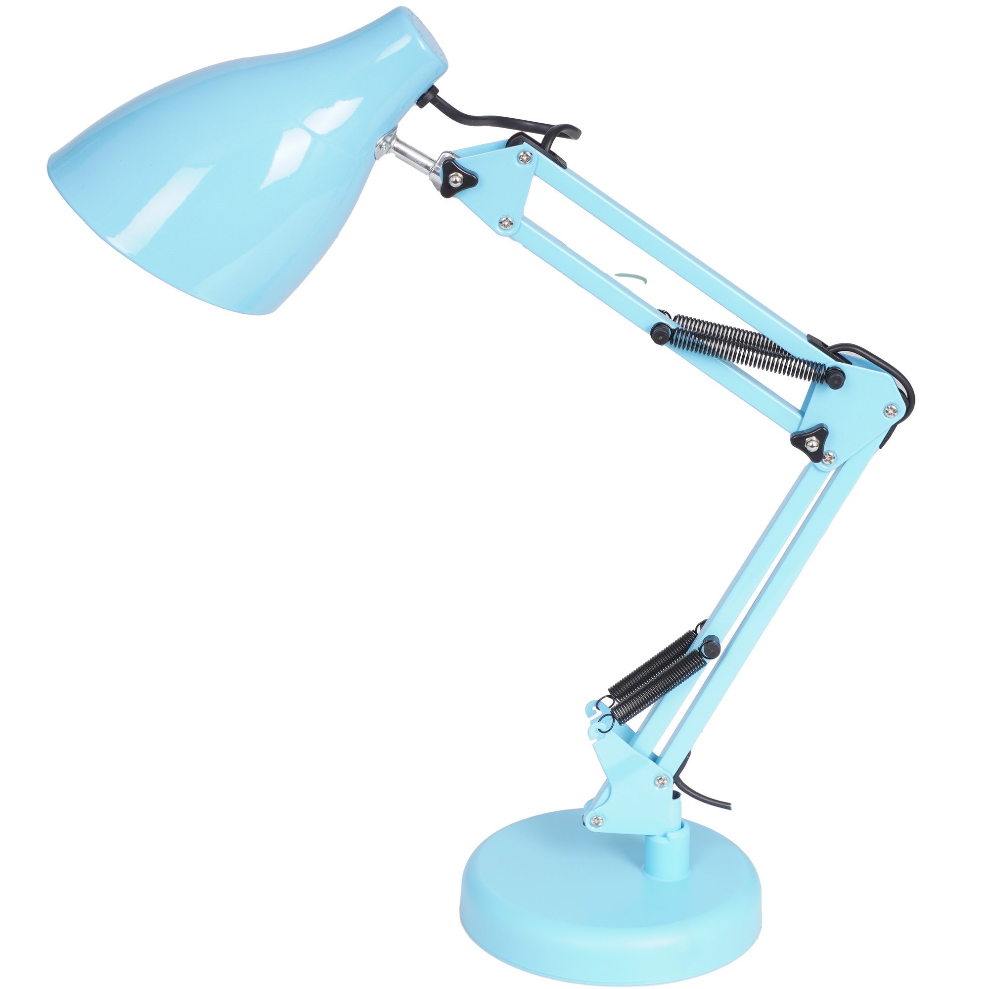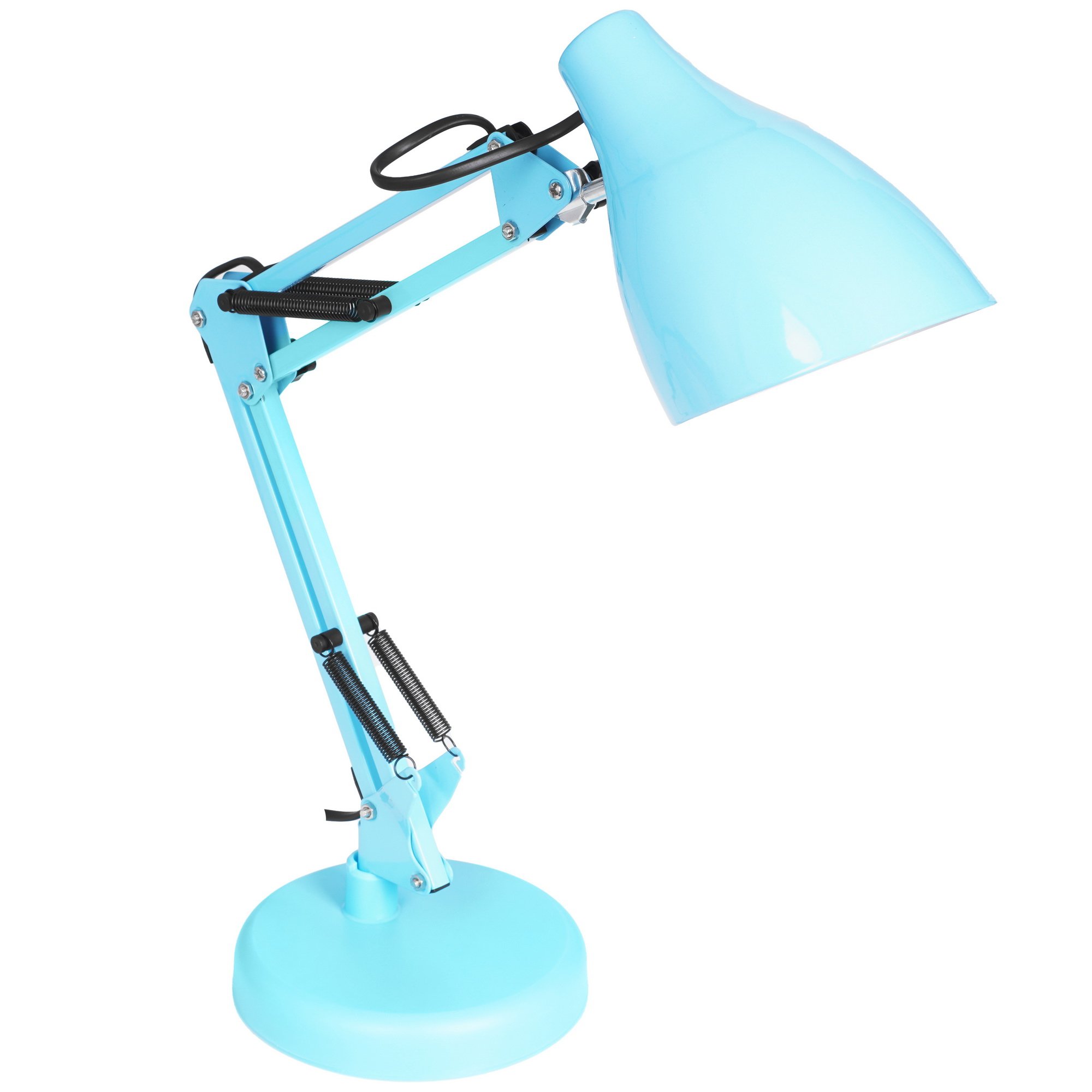 Голубой настольный светильник ЭРА N-123-E27-40W-LBU оснащен регулируемой металлической стойкой для легкой настройки угла обзора. Непрозрачный плафон защищает от попадания бликов на глаза и монитор для удобства чтения, письма и работы за компьютером. Вы можете поворачивать лампу в нужную сторону для точного освещения нужного пространства.