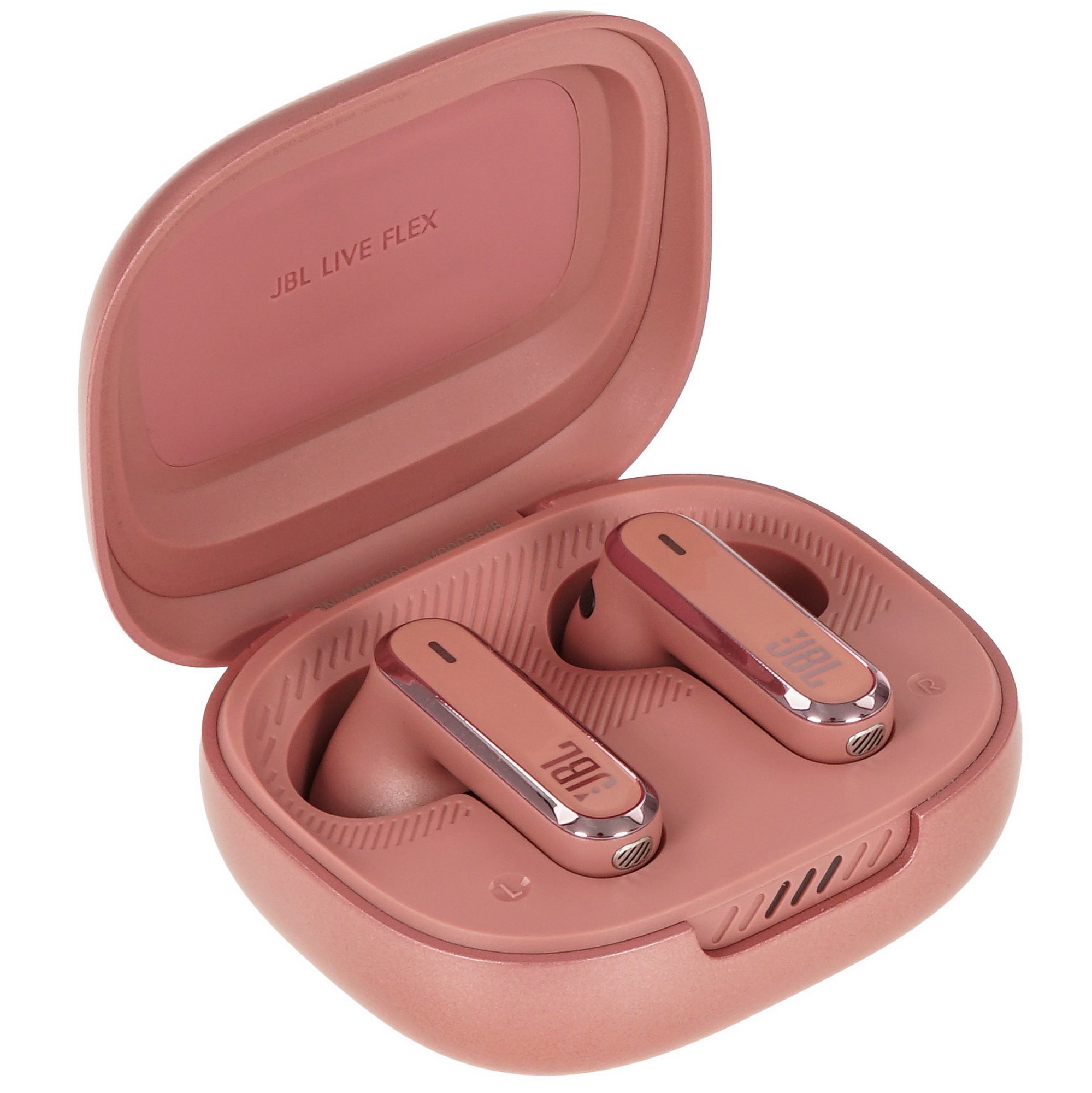 Розовые наушники TWS JBL Live Flex с 6 цифровыми микрофонами подходят для прослушивания музыки и телефонных разговоров. Пластиковые вкладыши не выпадают из ушных раковин без дополнительных креплений. Полуоткрытая акустика отсекает посторонние шумы и не смещает баланс звучания в область баса. Вы можете подключать наушники к двум устройствам и использовать в монорежиме.