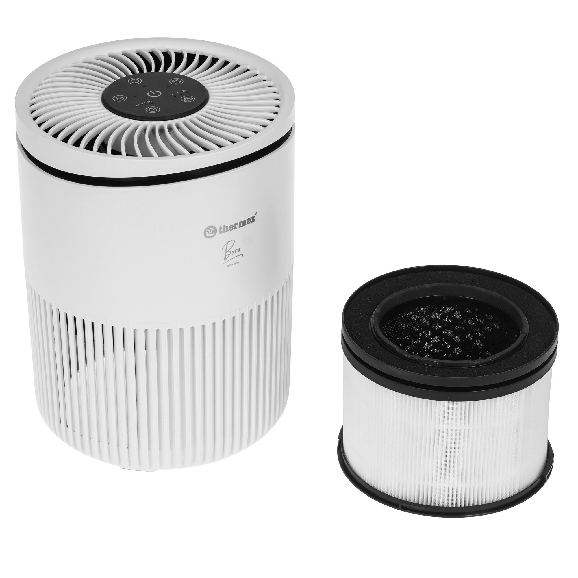 Очиститель воздуха THERMEX Bora с сенсорным управлением обеспечивает производительность 139 м³/час, подходя для помещений среднего размера. Оснащён сенсорным управлением, ночным режимом и таймером. Замена фильтров — раз в 70 дней.