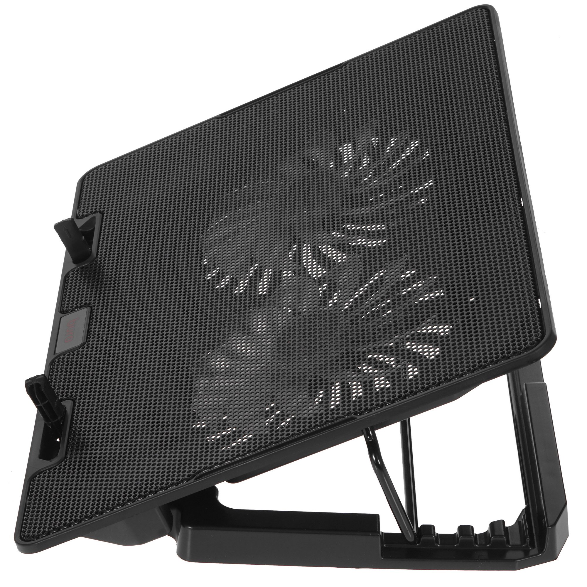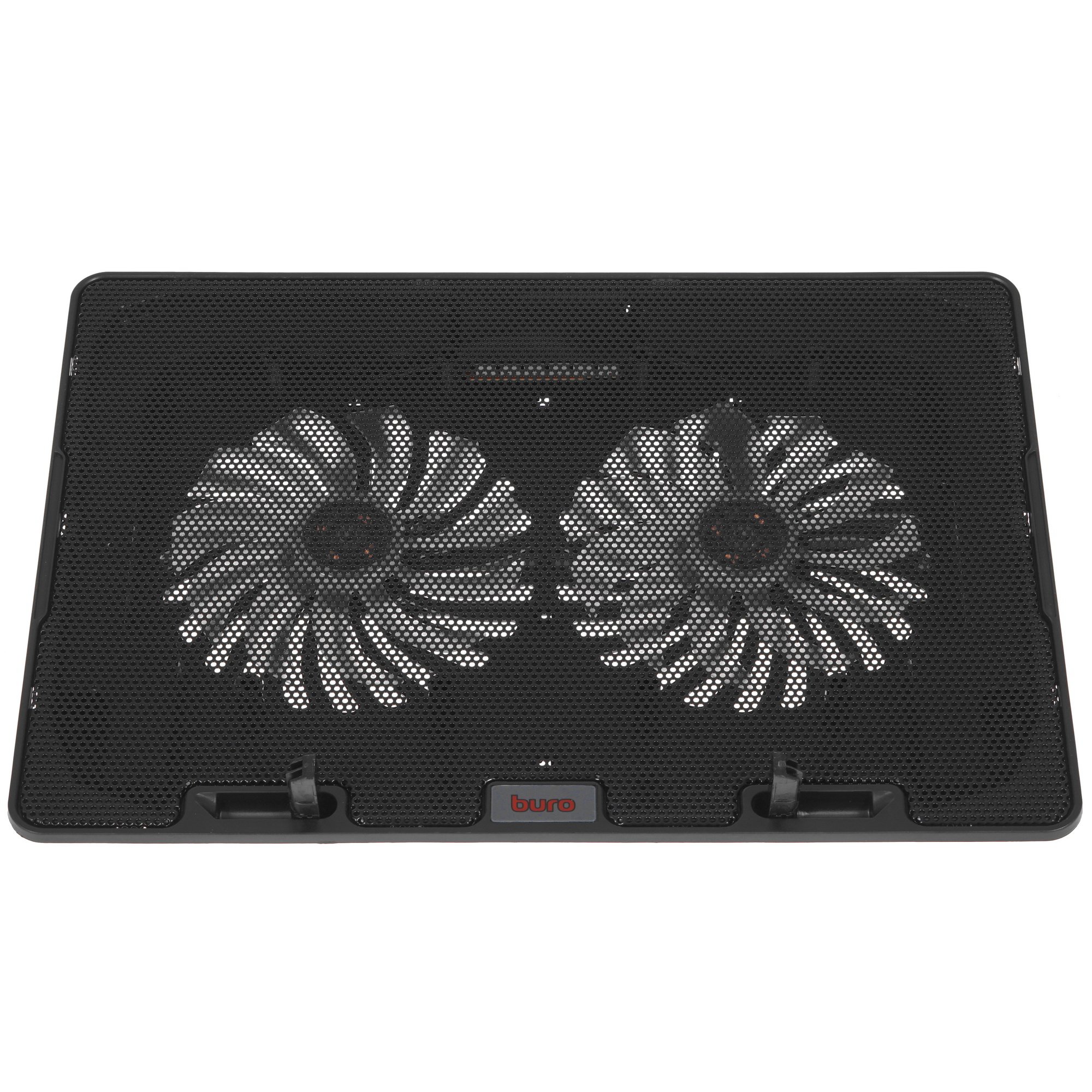 Главная задача Buro BU-LCP156-B214H ‒ предотвратить перегрев комплектующих ноутбука. Для этого в основание подставки встроены два вентилятора размерами 140x140 мм. Они вращаются на достаточной скорости, чтобы эффективно охладить все компоненты системы даже при интенсивной работе устройства. Для работы вентиляторов потребуется подключение к свободному компьютерному порту через кабель USB. Дополняет работу устройства синяя подсветка.
