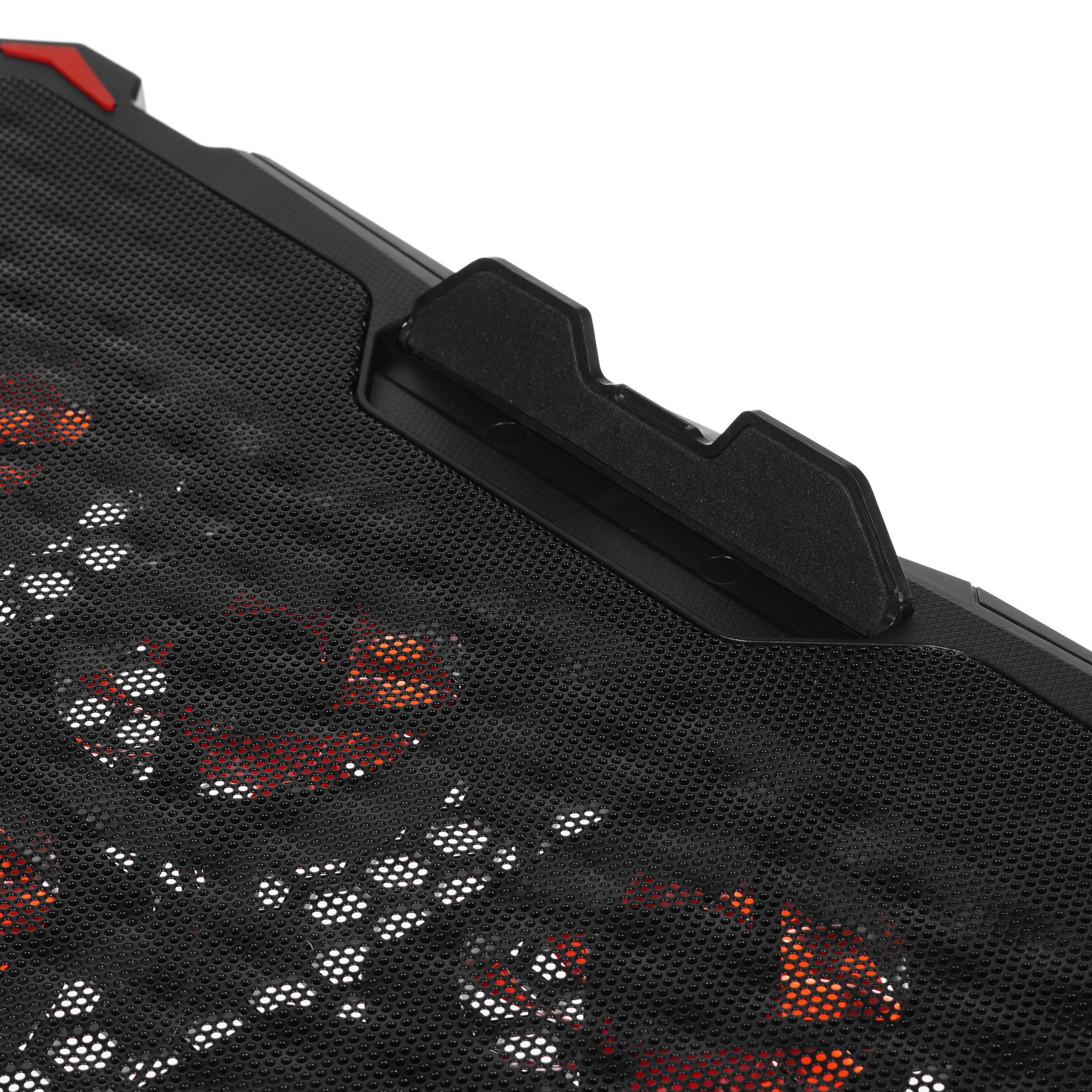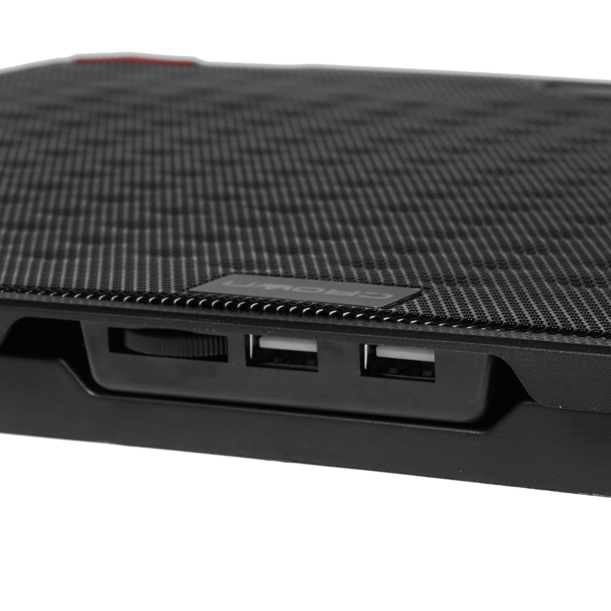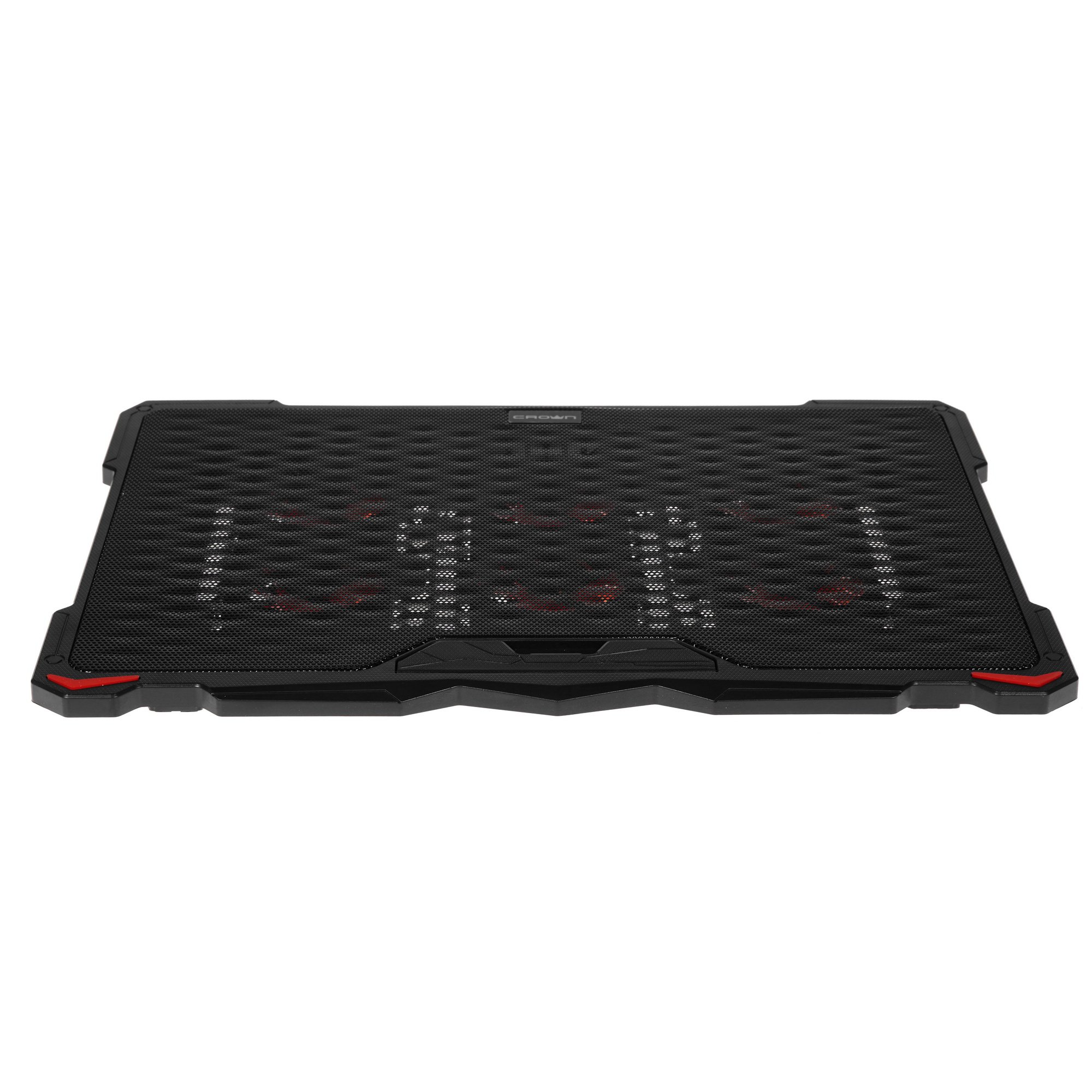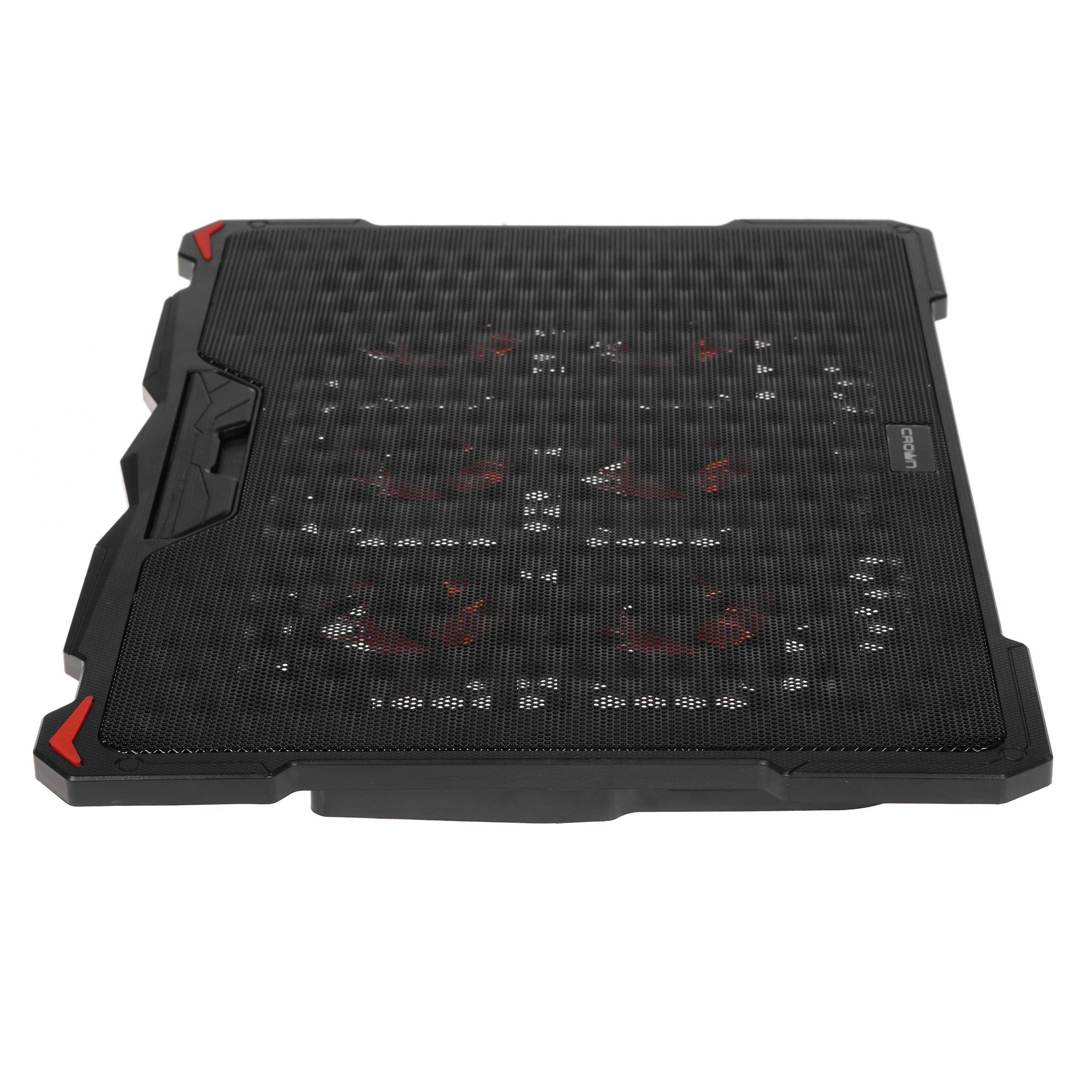 Подставка Crown CMLS-402 подходит для ноутбуков с диагональю до 17". Она изготовлена в прочном корпусе из пластика и металла. Особенность модели в наличии красной подсветки. Интенсивность вращения вентиляторов можно менять при помощи специального регулятора. Для наибольшей устойчивости ноутбука на поверхности подставки она оснащена панелью-упором. Устройство можно устанавливать в трех положениях в зависимости от угла наклона. Для естественной вентиляции поверхность подставки содержит перфорацию.