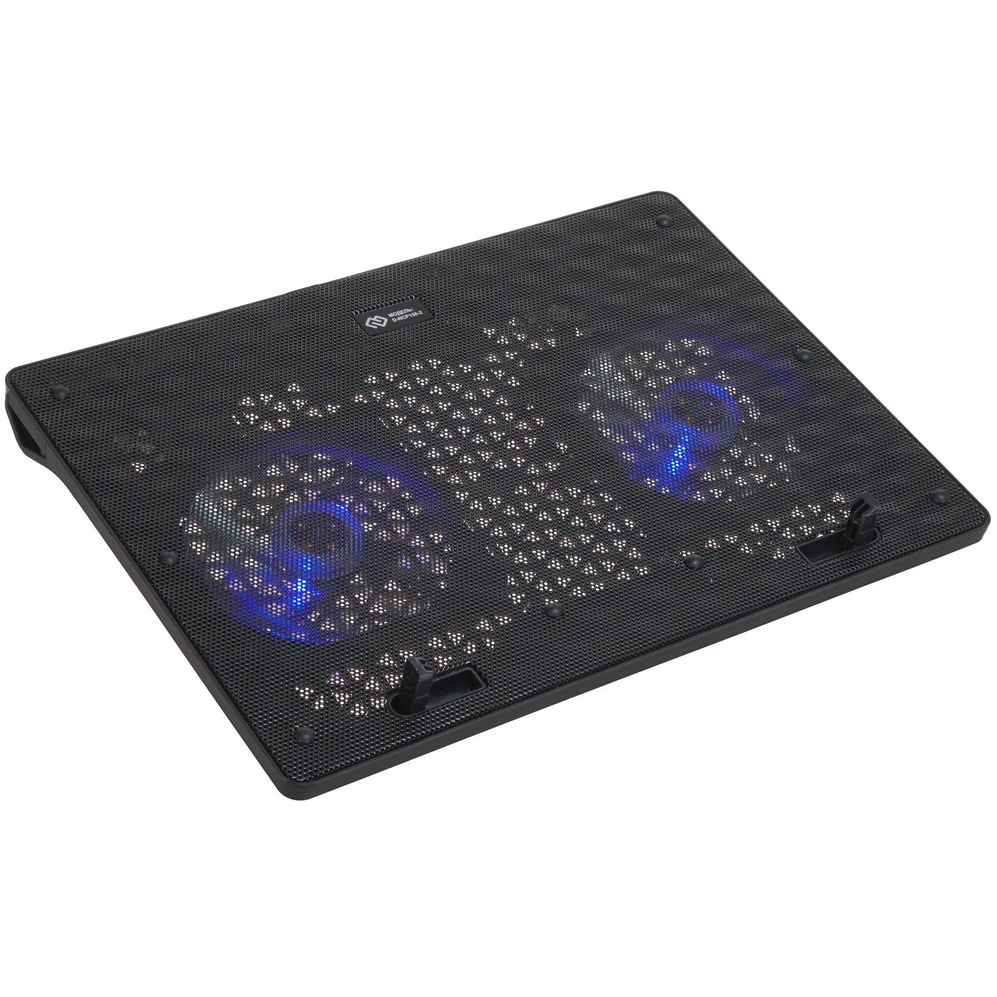 В основе Digma D-NCP156-2 лежат два вентилятора размерами 120x120 мм. Вращаясь на скорости 1500 об/мин, они обеспечивают эффективное охлаждение комплектующих. Благодаря перфорации по всей поверхности тыльная сторона устройства вентиляторы будут хорошо обдувать внутренние компоненты. Более эффектной подставку делает синяя подсветка в области вентиляторов. Для работы подсветки и вентиляторов нужно подключить подставку к компьютерному порту, используя кабель USB.