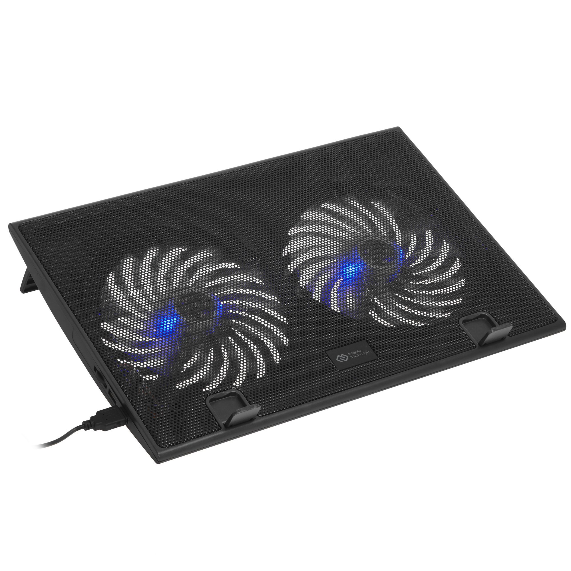 Работу вентиляторов подставки Digma D-NCP170-2H дополняет синяя подсветка. Это делает ее работу более эффектной. Подключается устройство к свободному компьютерному порту, используя USB-кабель. Благодаря перфорации по всей поверхности подставка эффективно охлаждает комплектующие ноутбука. При помощи подставки можно регулировать угол наклона устройства. Лицевая панель содержит две опоры, которые предотвращают скольжение ноутбука вперед.