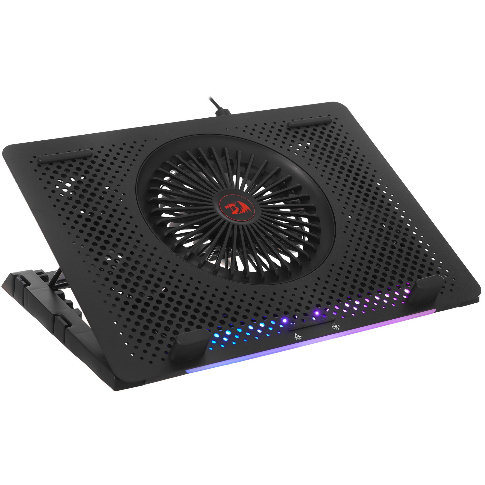Подставка для ноутбука Redragon Ivy может использоваться с лэптопами, диагональ которых достигает 15.6 дюйма. Она оснащена 5 вентиляторами, RGB-подсветкой и 2 портами USB. Регулируемая по высоте конструкция Redragon Ivy выполнена из алюминия и пластика. Угол наклона конструкции регулируется для удобства пользователя. В конструкции есть подставка для смартфона.