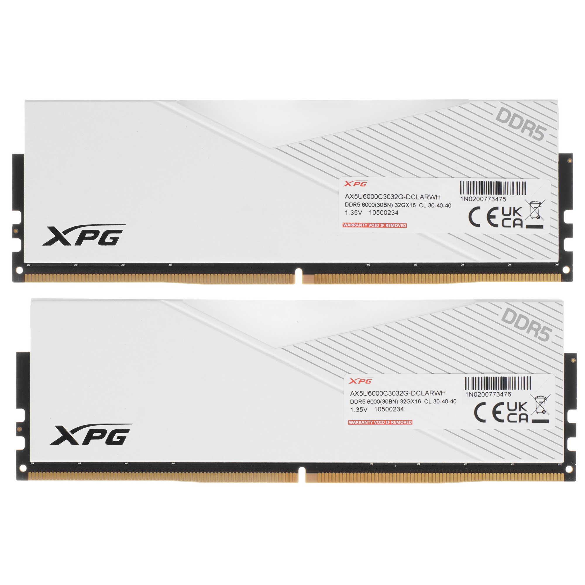 Оперативная память XPG Lancer, DDR5, 64Gb (2x32Gb), 6000MHz, CL30, DIMM, с радиаторами, RGb, белый