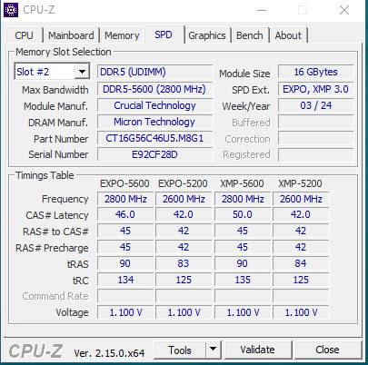 Оперативная память Crucial, DDR5, 16Gb (1x16 Gb), 5600 MHz, CL46, DIMM