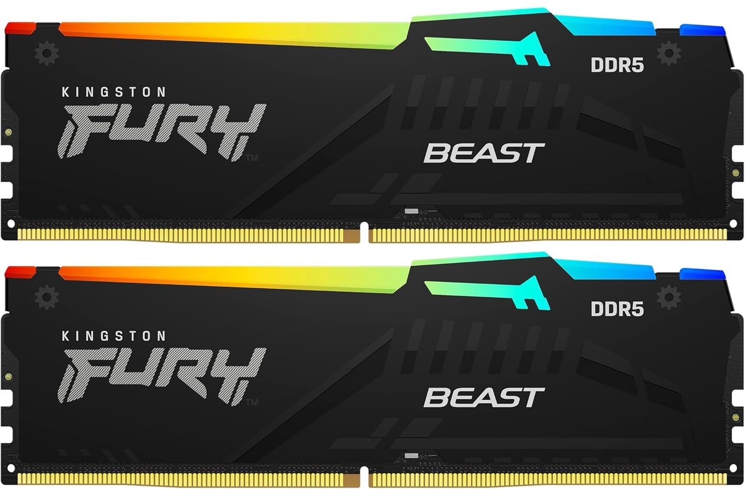 Оперативная память Kingston FURY Beast Black RGB с многоцветным освещением разработана специально для настольных ПК игрового уровня. Модель выделяется алюминиевыми радиаторами черного цвета и полупрозрачной панелью со светодиодами RGB. Программируемая подсветка предлагает широкие возможности настройки параметров освещения и поддерживает синхронизацию с совместимыми комплектующими.