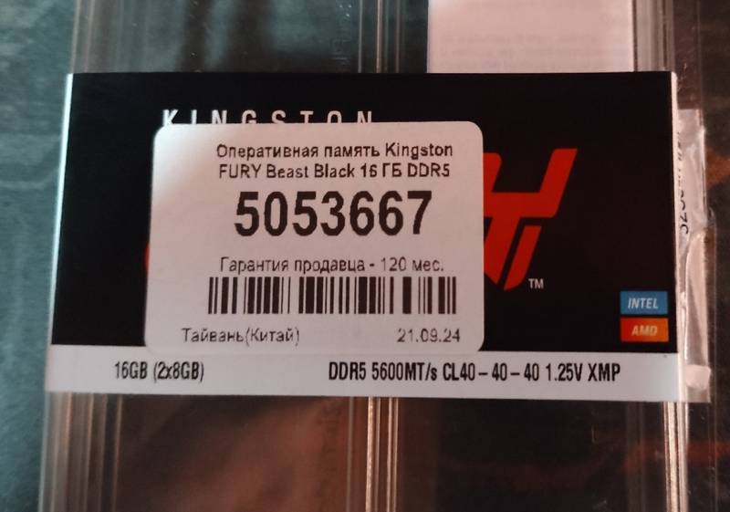 Оперативная память Kingston Fury Beast, DDR5, 16Gb (2x8Gb), 5600MHz, CL40, DIMM, с радиаторами, черный