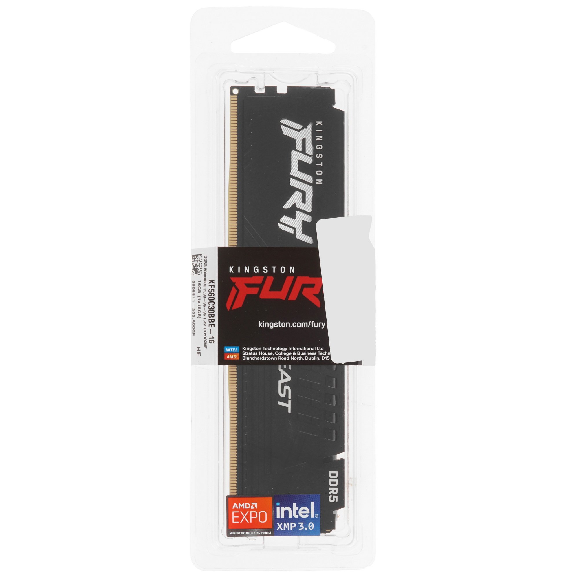 Оперативная память Kingston Fury Beast, DDR5, 16Gb (1x16Gb), 6000MHz, CL30, DIMM, с радиатором, черный
