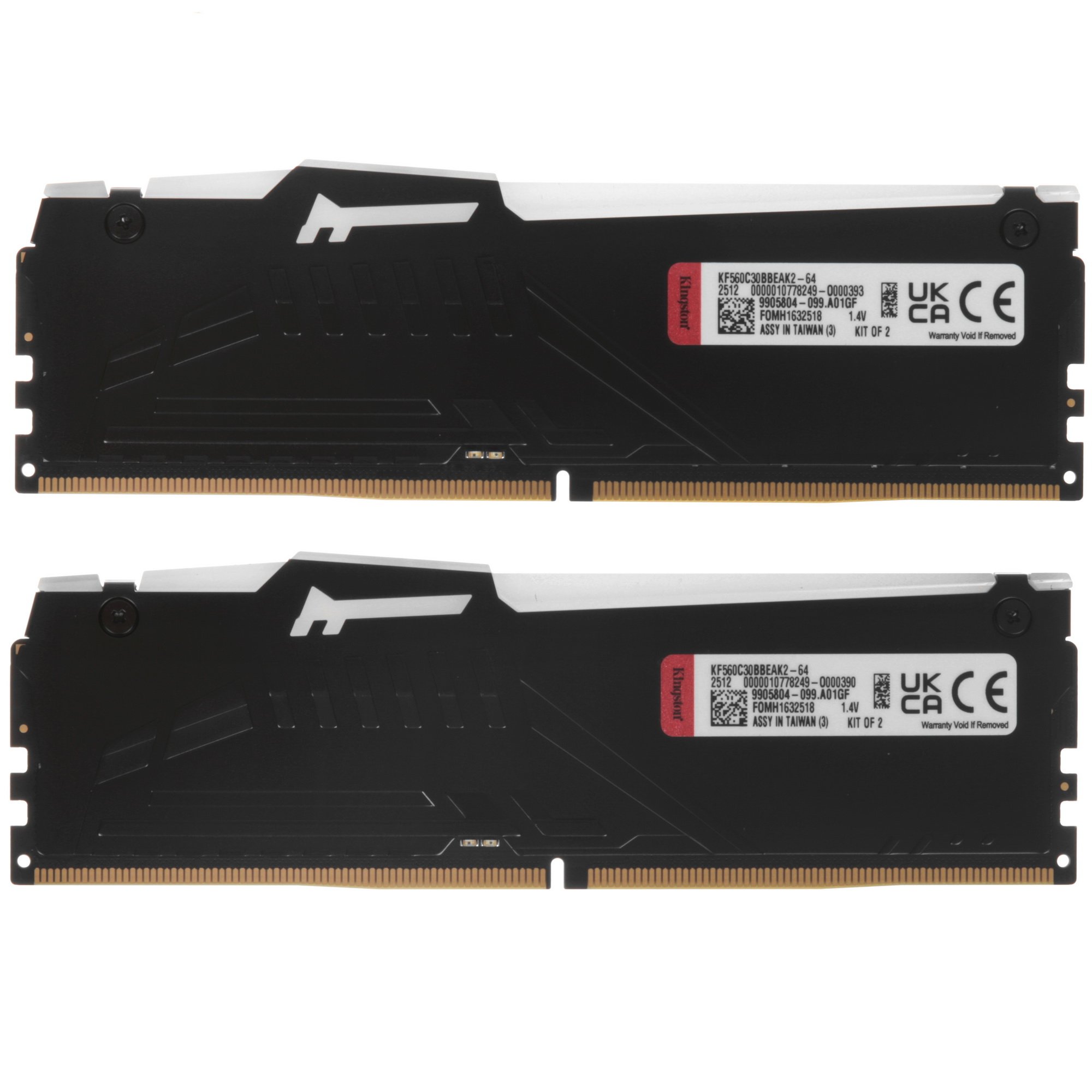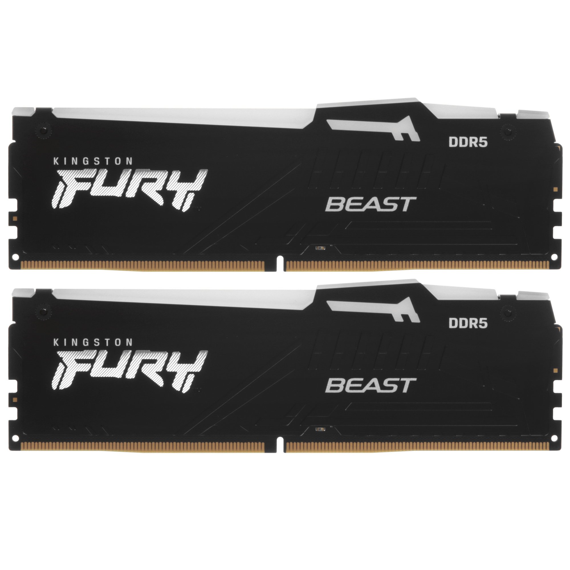 Оперативная память Kingston Fury Beast, DDR5, 64Gb (2x32Gb), 6000MHz, CL30, DIMM, с радиатором, RGb, черный