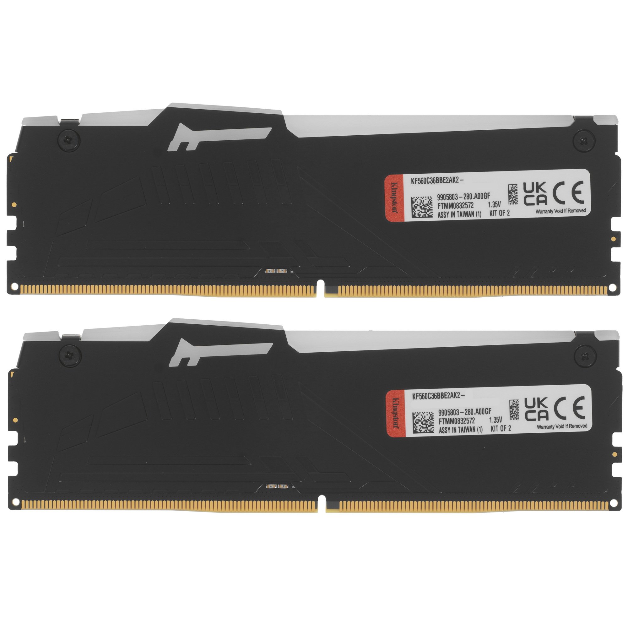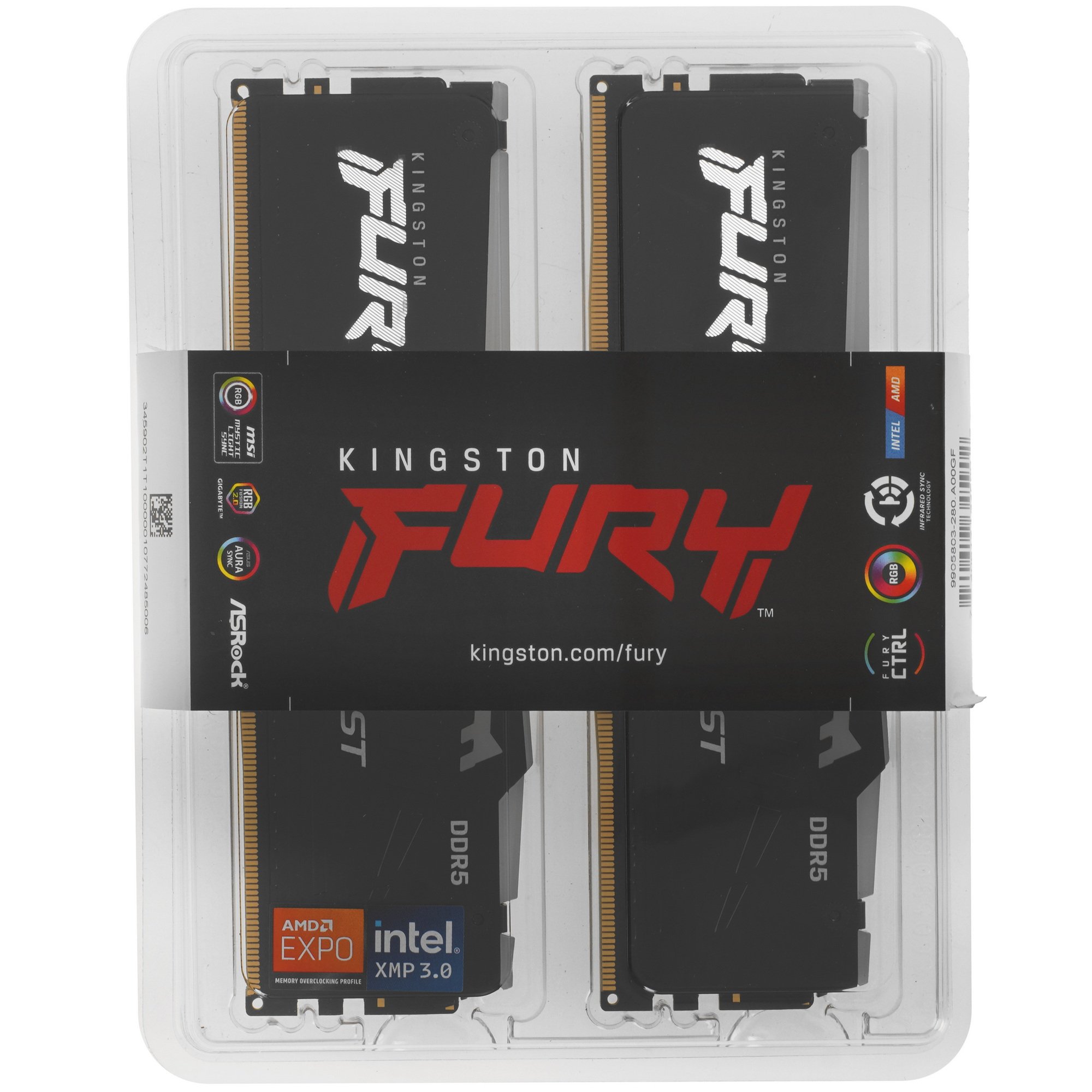 Оперативная память Kingston Fury Beast, DDR5, 32Gb (2x16Gb), 6000MHz, CL36, DIMM, с радиаторами, RGB, черный