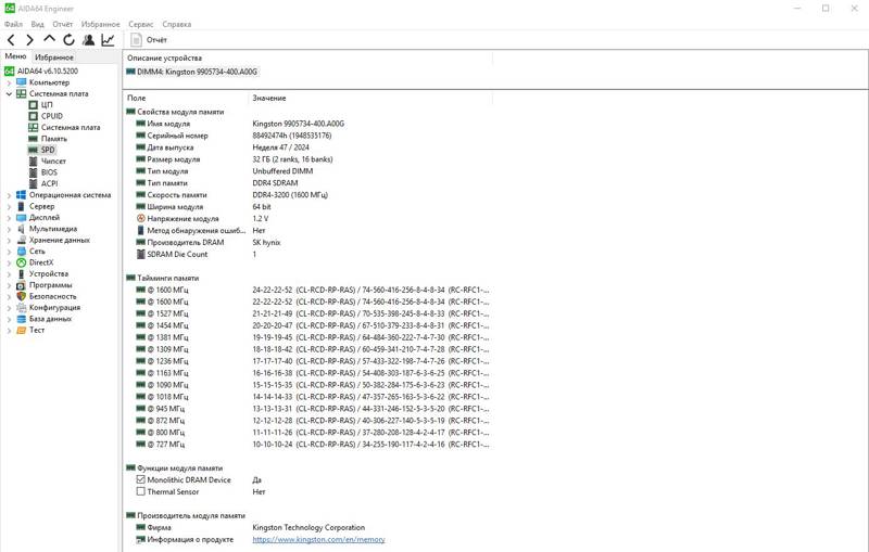 Оперативная память Kingston ValueRAM, DDR4, 32Gb (1x32Gb), 3200MHz, CL22, DIMM