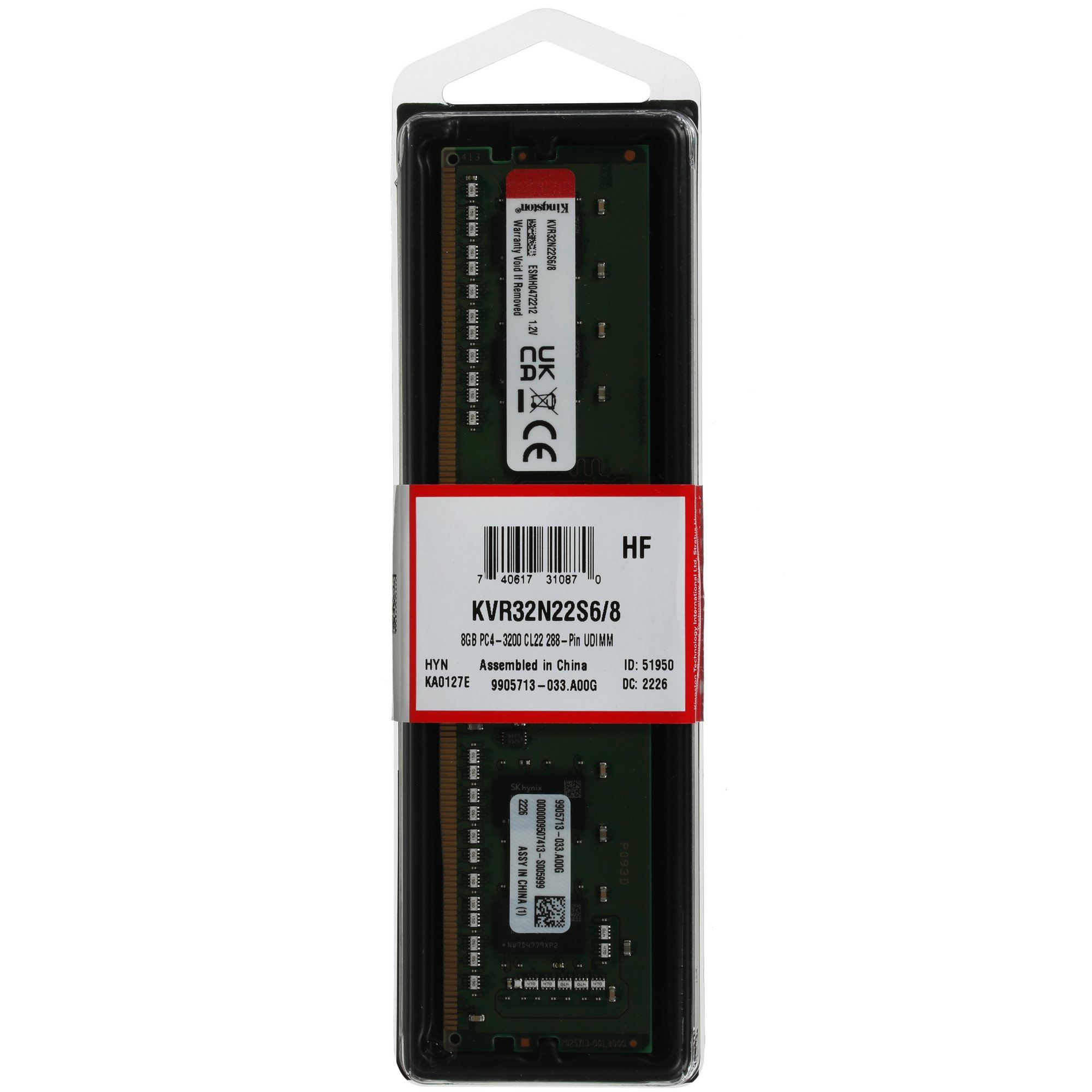 Оперативная память Kingston ValueRAM, DDR4, 8Gb (1x8Gb), 3200MHz, CL22, DIMM