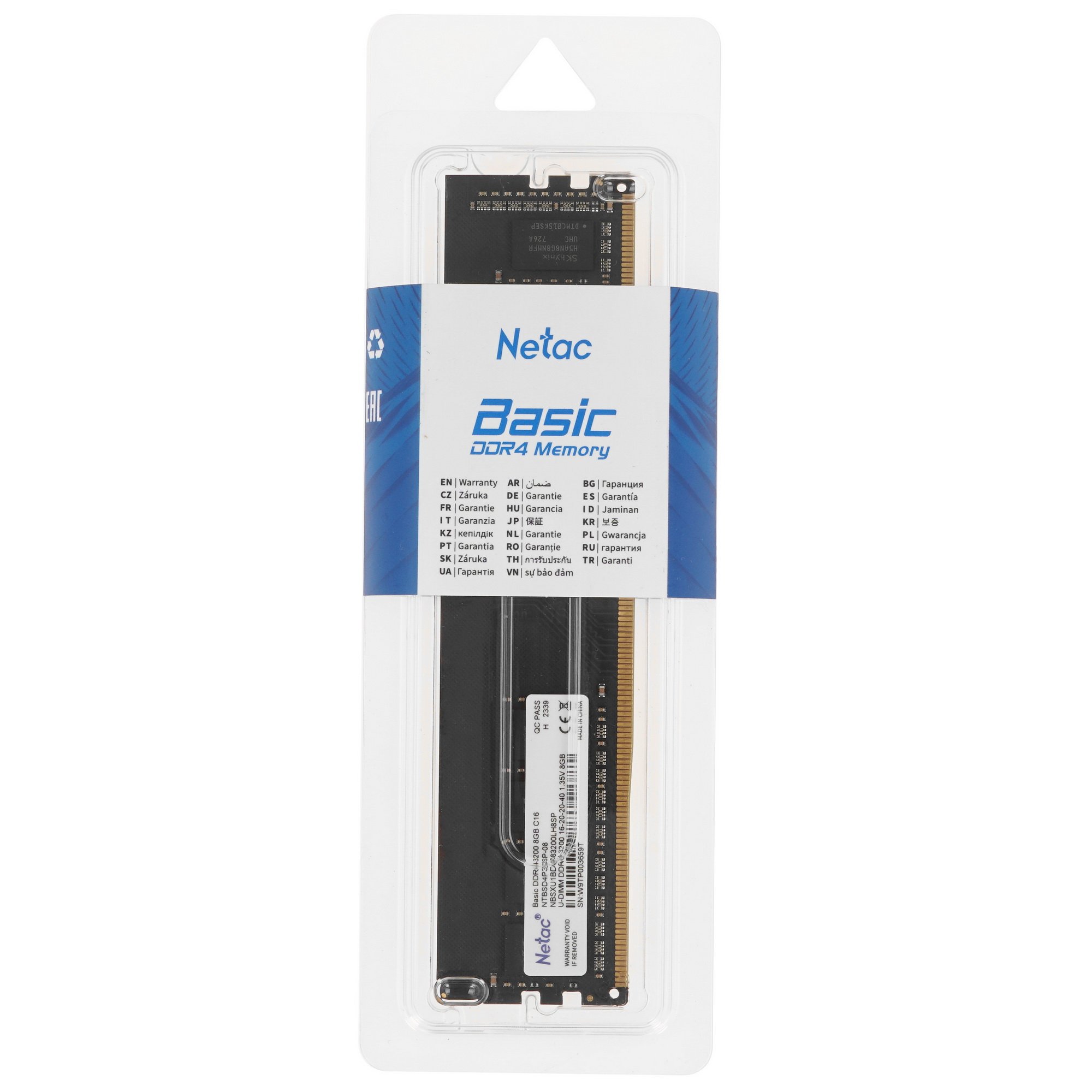 Оперативная память NETAC Basic, DDR4, 8Gb (1x8Gb), 3200MHz, CL16, DIMM