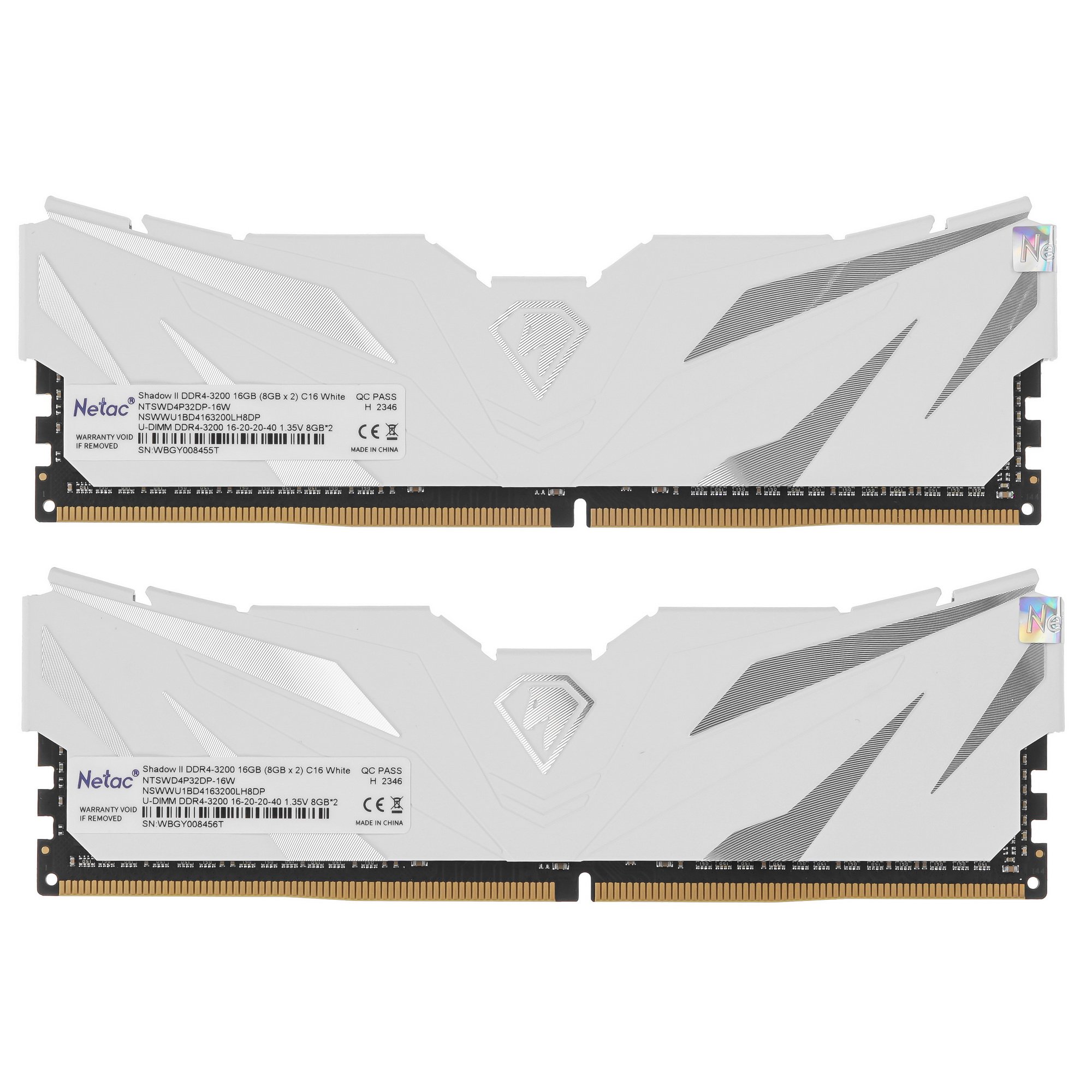 Оперативная память NETAC, DDR4, 16Gb (2x8Gb), 3200MHz, CL16, DIMM, с радиаторами, белый