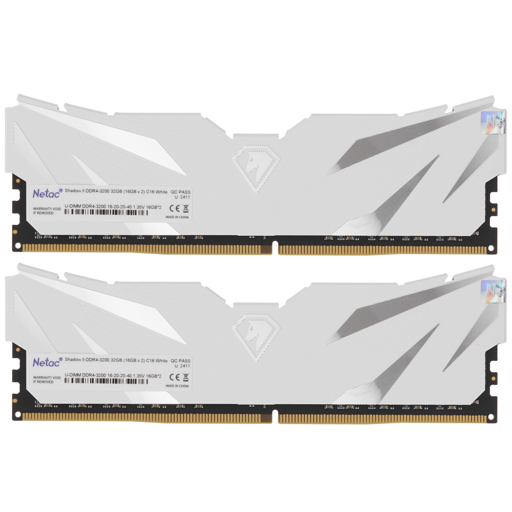 Оперативная память NETAC, DDR4, 32Gb (2x16Gb), 3200MHz, CL16, DIMM, с радиаторами, белый