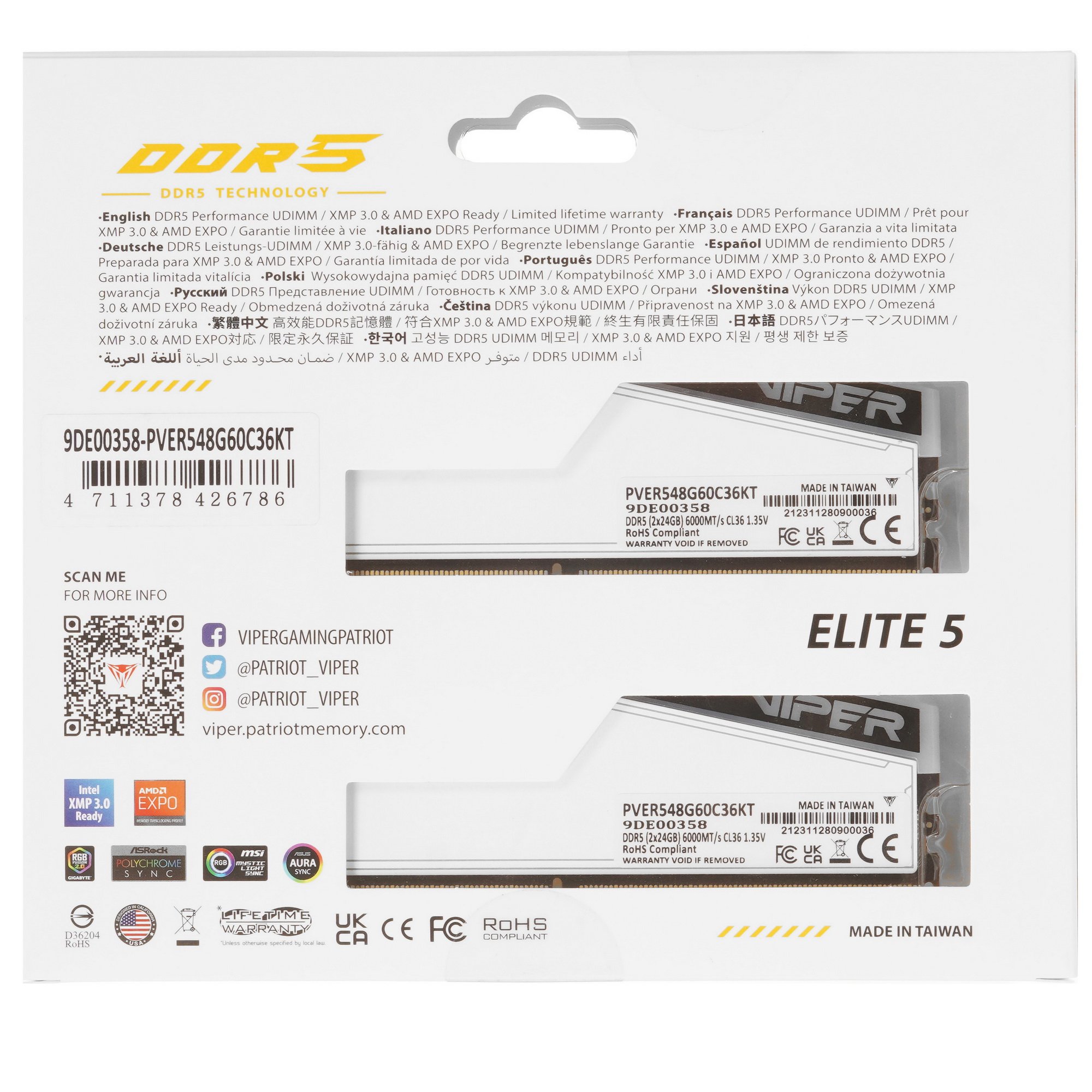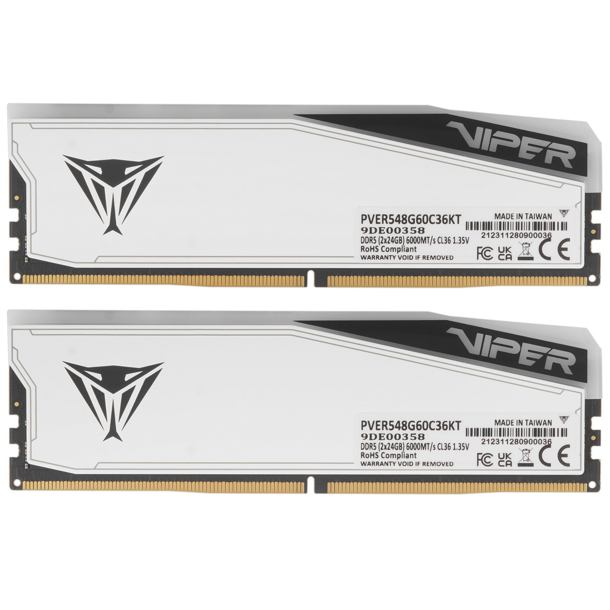Оперативная память Patriot Viper Elite 5 TUF Gaming, DDR5, 48Gb (2x24 Gb), 6000 MHz, CL36, DIMM, радиатор, RGb, белый