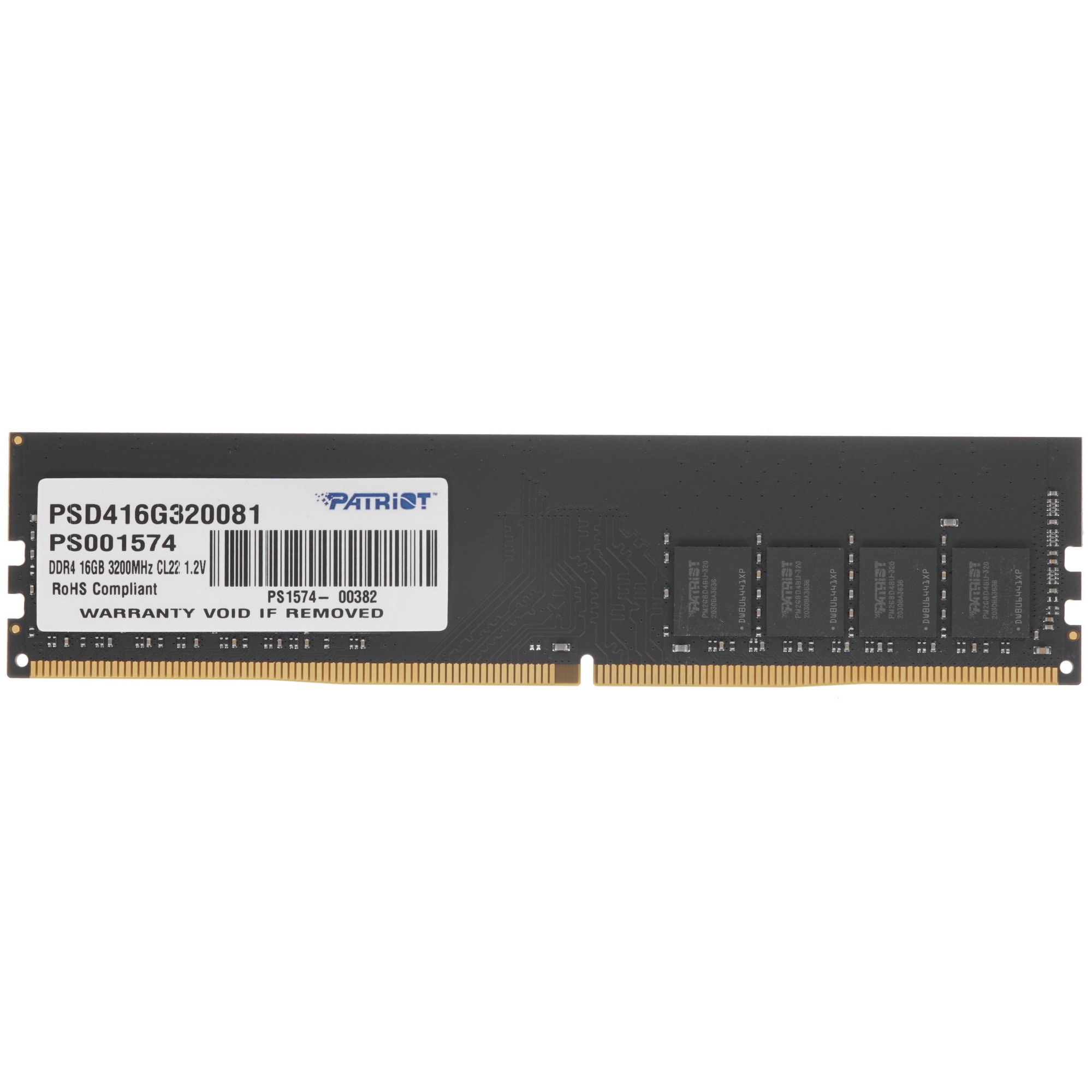 Оперативная память Patriot Signature, DDR4, 16Gb (1x16 Gb), 3200 MHz, CL22, DIMM