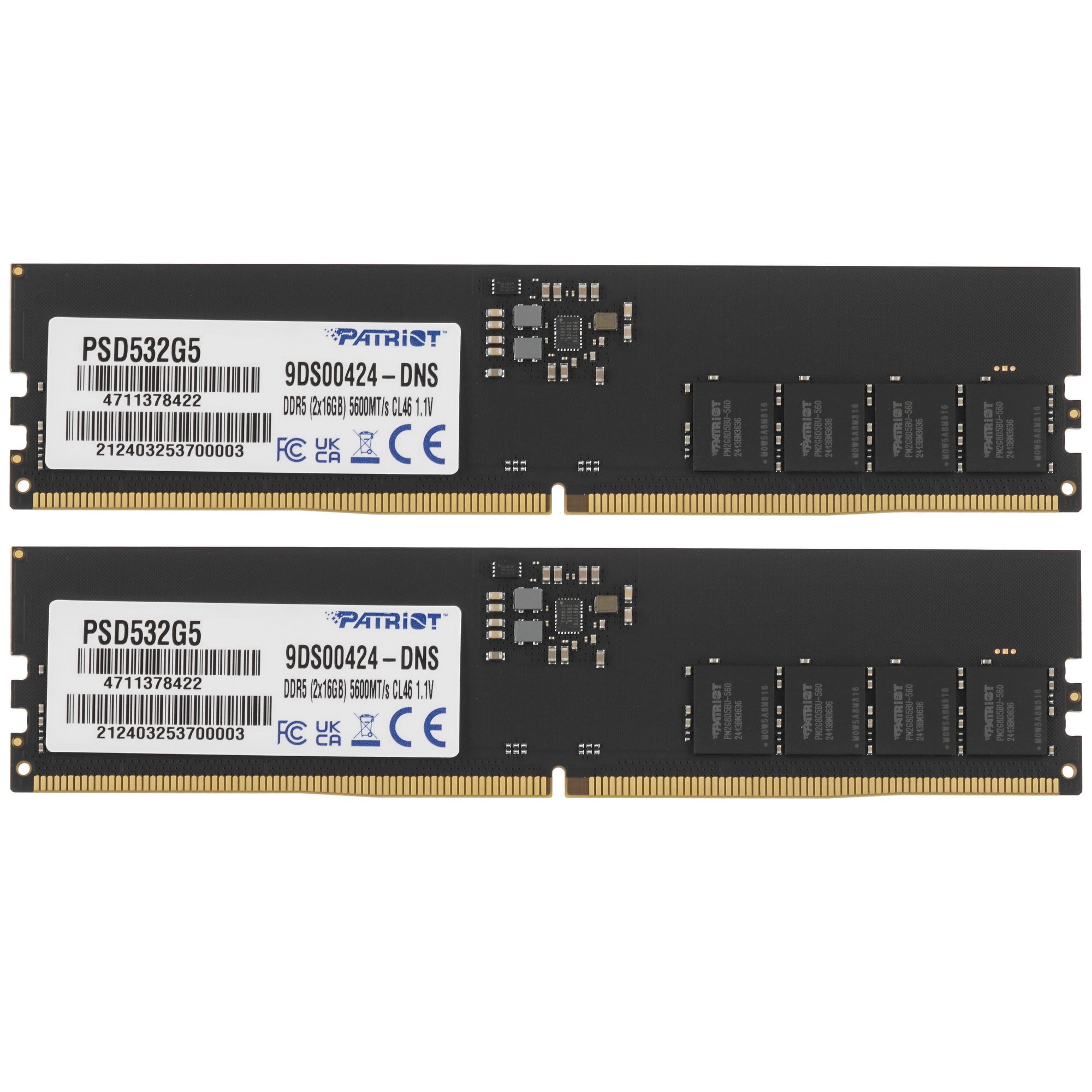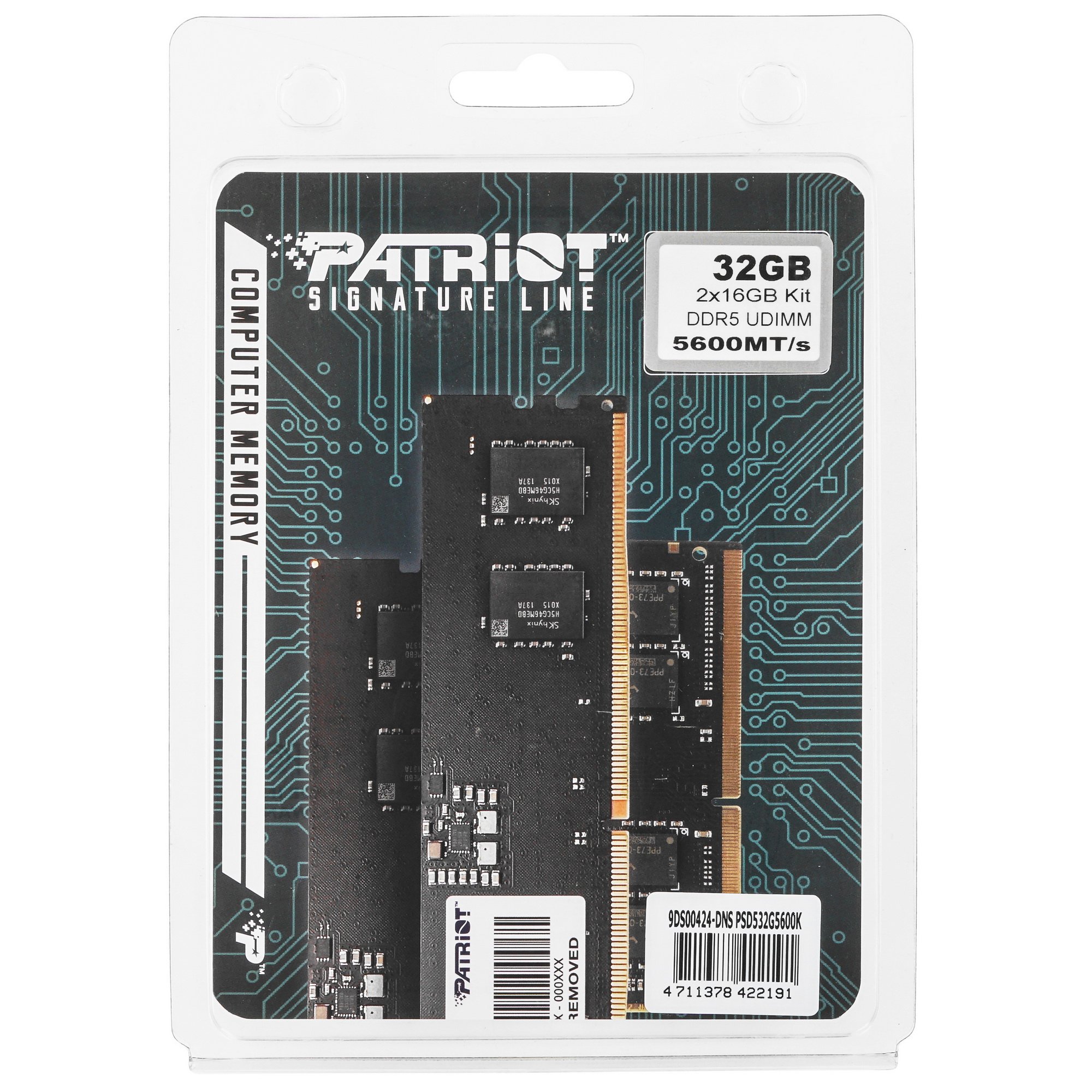 Оперативная память Patriot Signature, DDR5, 32Gb (2x16 Gb), 5600 MHz, CL46, DIMM