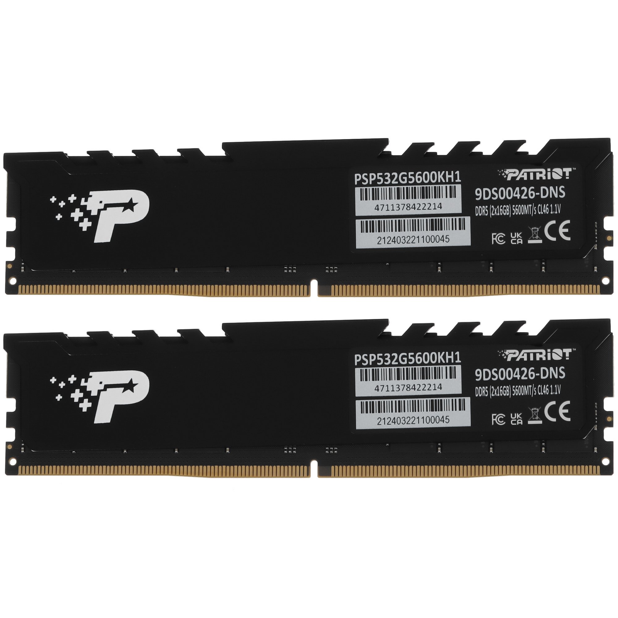 Оперативная память Patriot Signature Premium [PSP532G5600KH1] – 32-гигабайтный комплект из 2 модулей DDR5 по 16 ГБ с таймингами 46-46-46-90. Набор подходит для оснащения игровых ПК и производительных универсальных компьютеров для дома или офиса. Память с тактовой частотой 5600 МГц обеспечивает высокую скорость обмена данными между процессором и остальными компонентами компьютера при работе с любыми операционными системами и программами. Технология On-Die ECC предотвращает программные сбои и улучшает стабильность системы. Совместимость комплекта с материнскими платами и CPU расширена поддержкой частот от 4800 МГц.