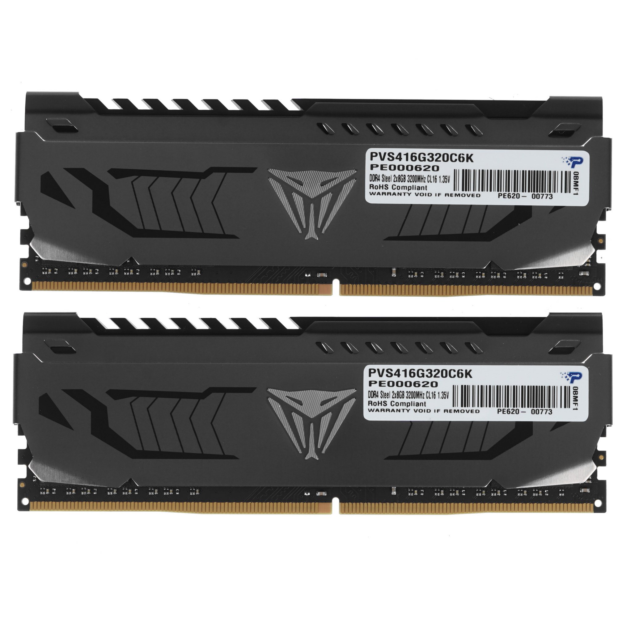 Оперативная память Patriot Viper Steel, DDR4, 16Gb (2x8 GB), 3200 MHz, CL16, DIMM, радиатор, черный