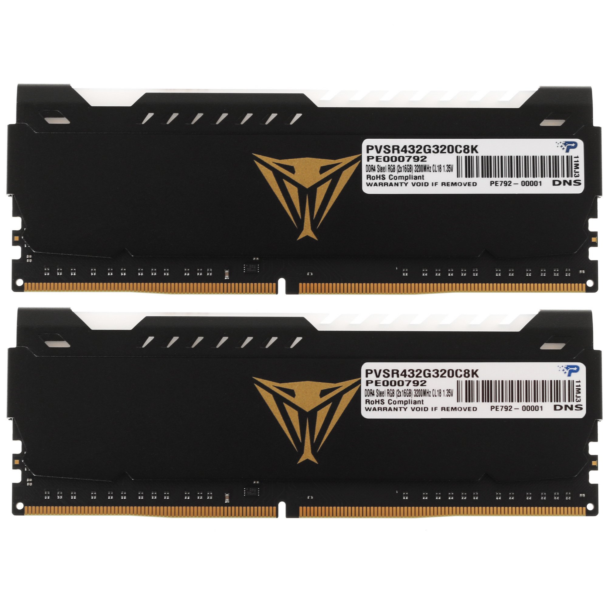Оперативная память Patriot Viper Steel, DDR4, 32Gb (2x16Gb), 3200MHz, CL18, DIMM, с радиатором, RGb, черный