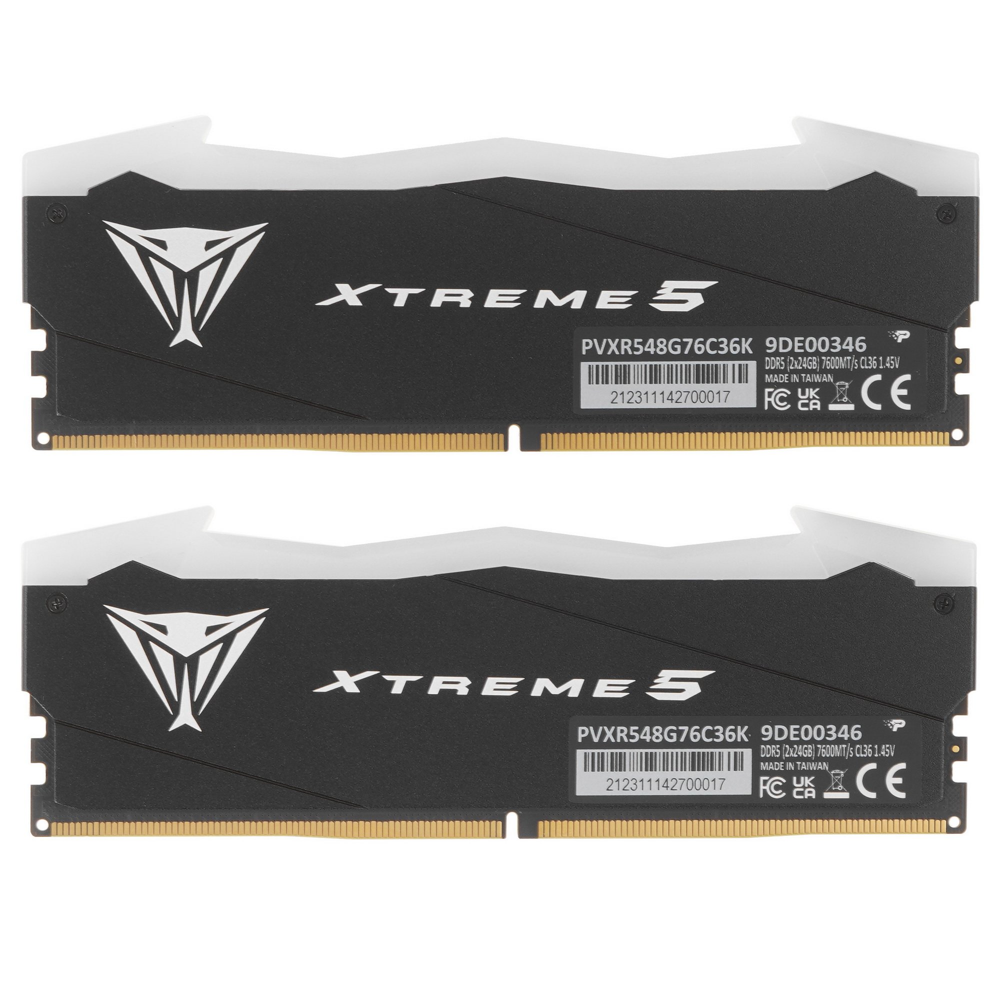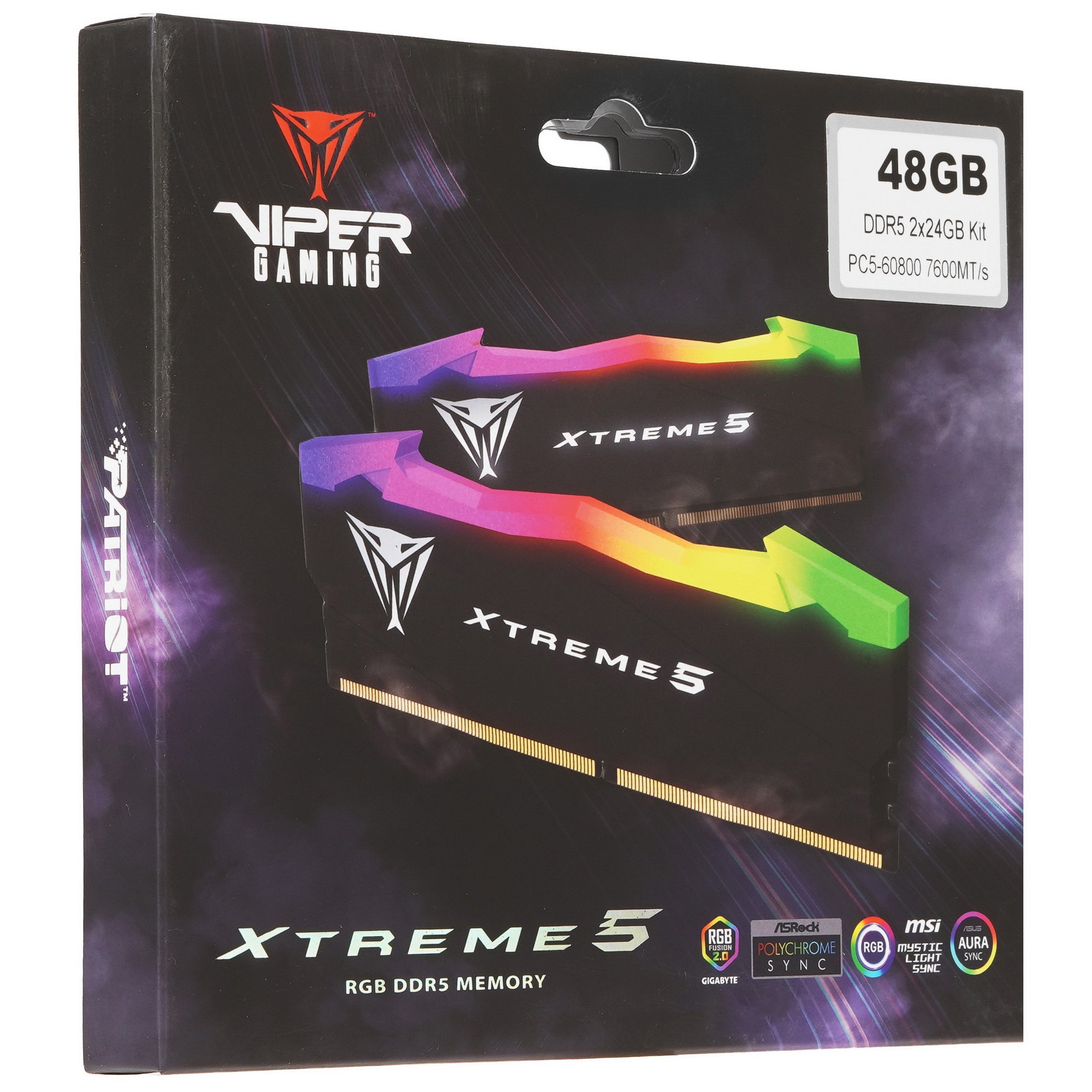 Оперативная память Patriot Viper Xtreme 5, DDR5, 48Gb (2x24Gb), 7600MHz, CL36, DIMM, с радиаторами, RGb, черный
