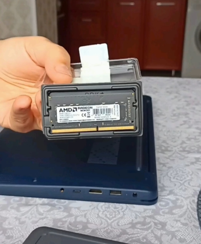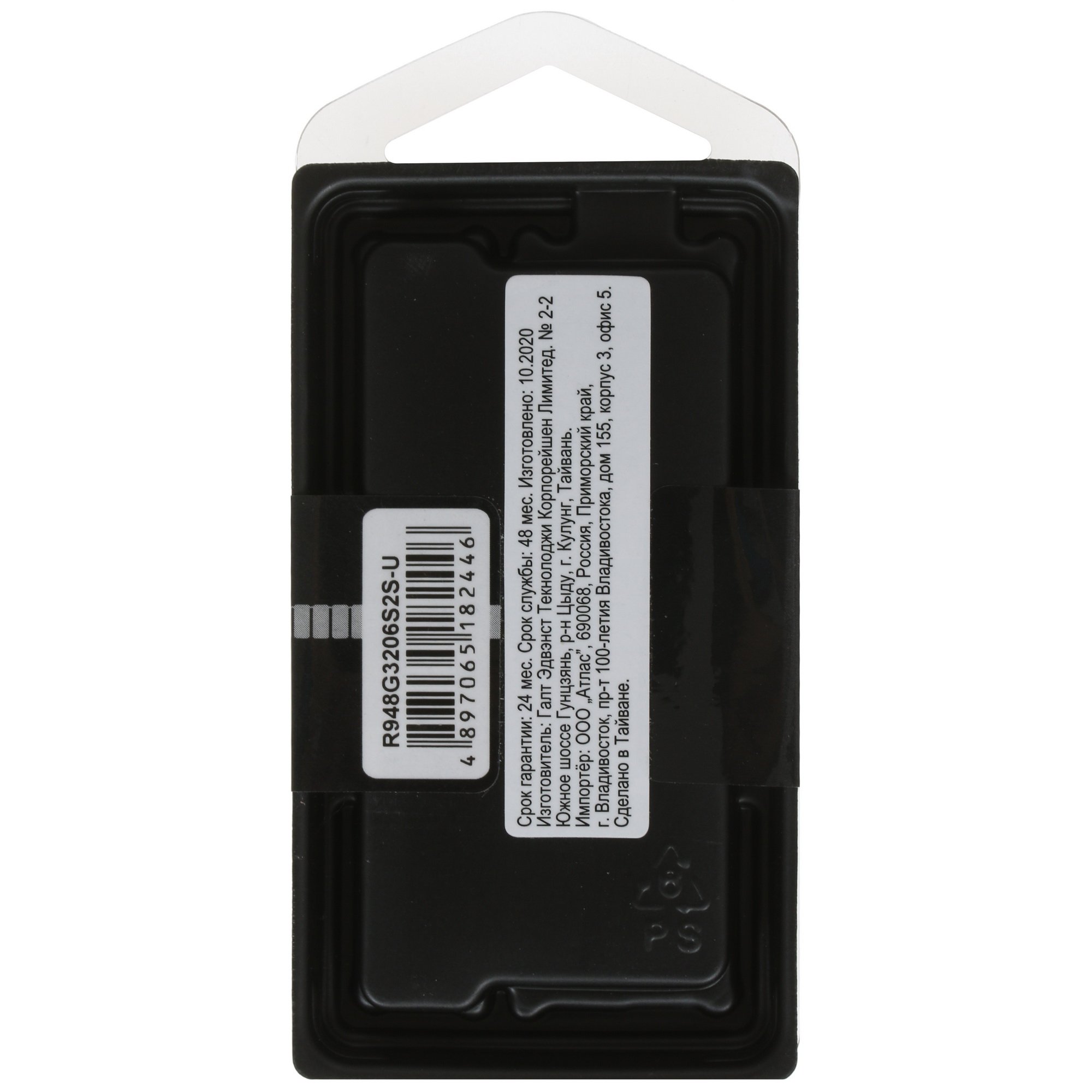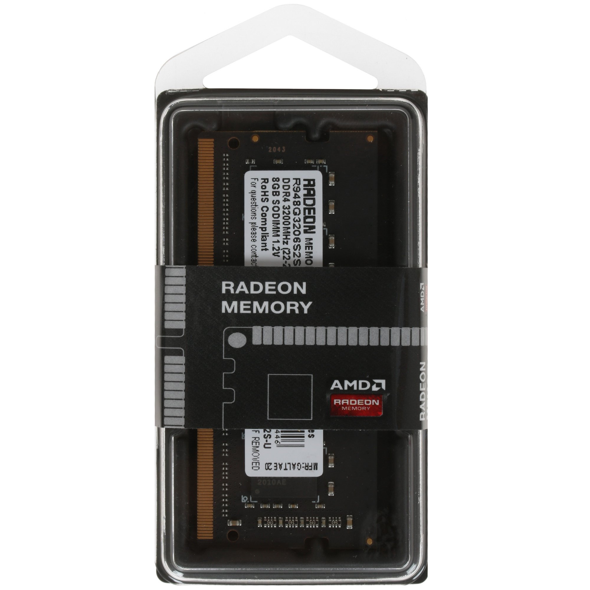 Память SODIMM AMD Radeon R9 [R948G3206S2S-U] произведена с использованием двусторонней компоновки чипов. В наличии наклейка с технической информацией. Память упакована в мини-коробку из пластика.