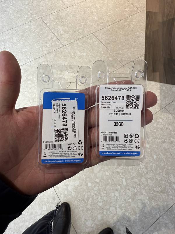 Оперативная память Crucial 32Gb 4800МГц DDR5, SO-DIMM CL40