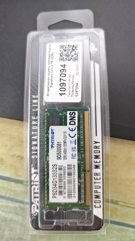 Оперативная память Patriot, DDR3, 4Gb (1x4 GB), 1333 MHz, CL9, SO-DIMM