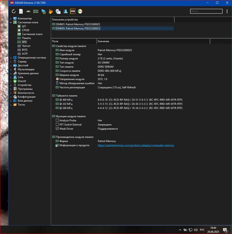 Оперативная память Patriot, DDR2, 2Gb (1x2 GB), 800 MHz, CL6, SO-DIMM