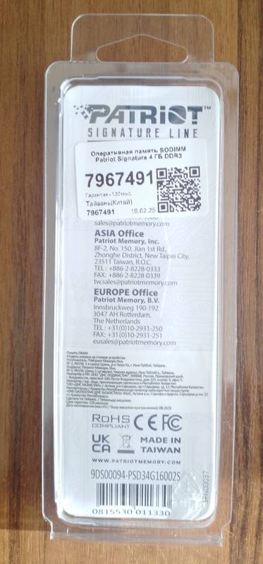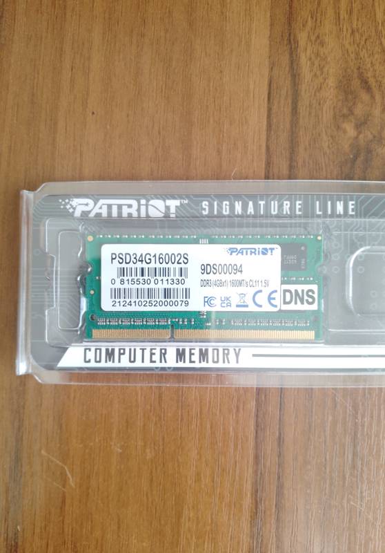 Оперативная память SODIMM Patriot [PSD34G16002S] имеет объем 4 ГБ. Модель, соответствующая типу DDR3, является оптимальным вариантом для комплектации мобильных компьютеров, используемых для решения широкого круга задач. Модуль подходит как для модернизации ноутбука, так и для расширения объема памяти.