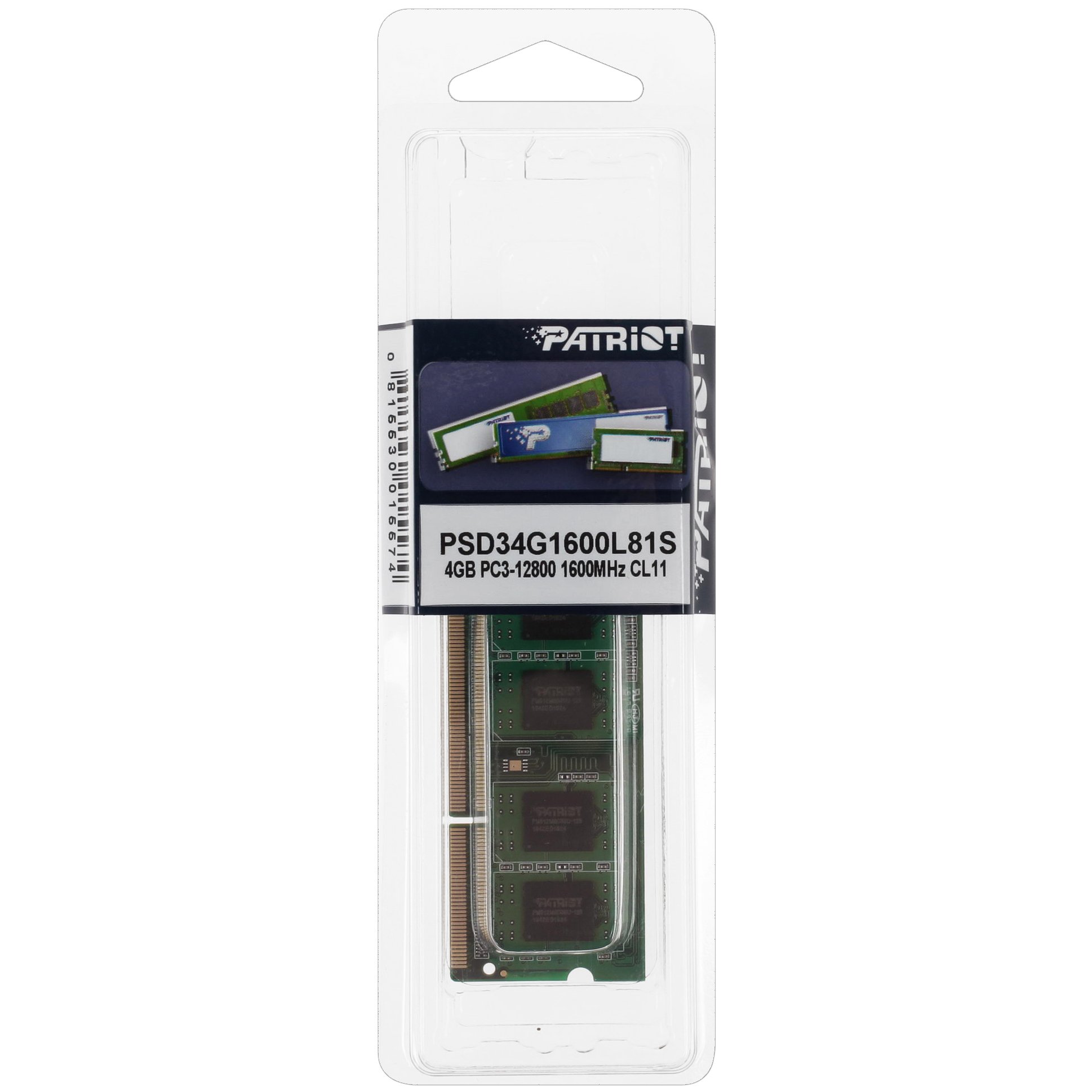 Оперативная память Patriot, DDR3L, 4Gb (1x4 GB), 1600 MHz, CL11, SO-DIMM