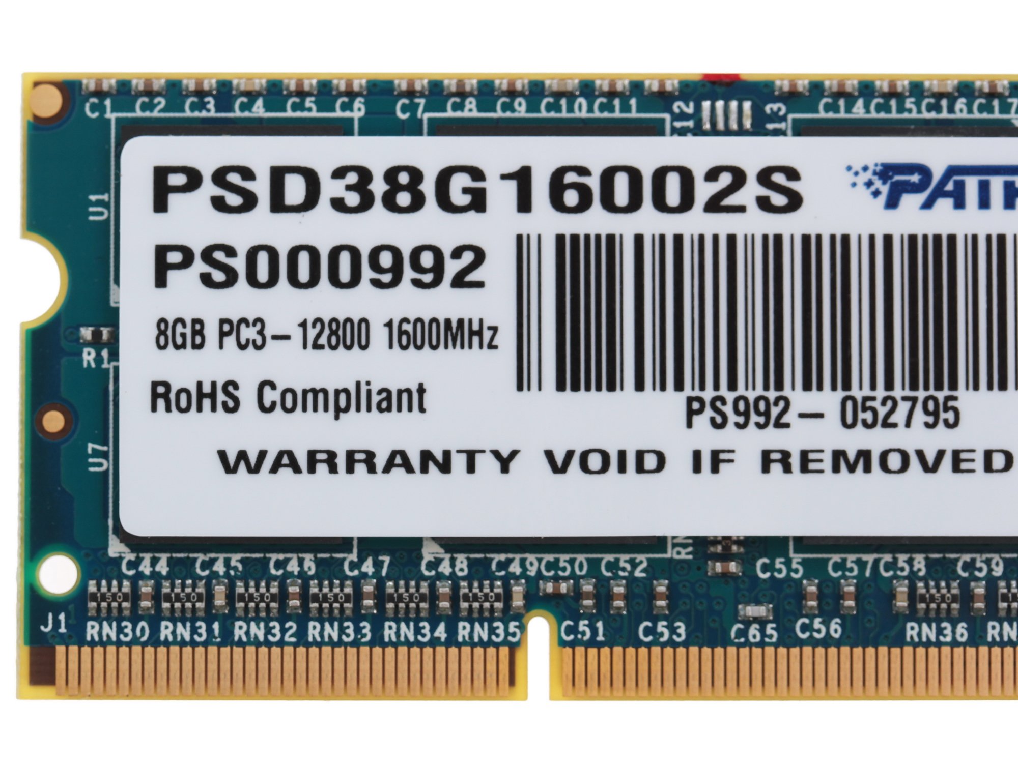 Оперативная память Patriot, DDR3, 8Gb (1x8 GB), 1600 MHz, CL11, SO-DIMM