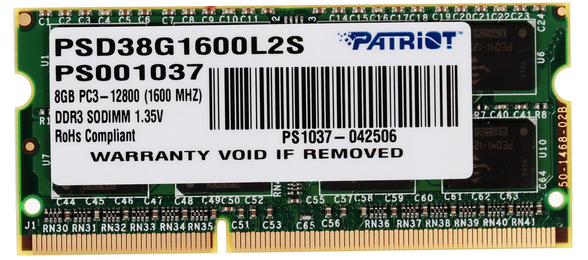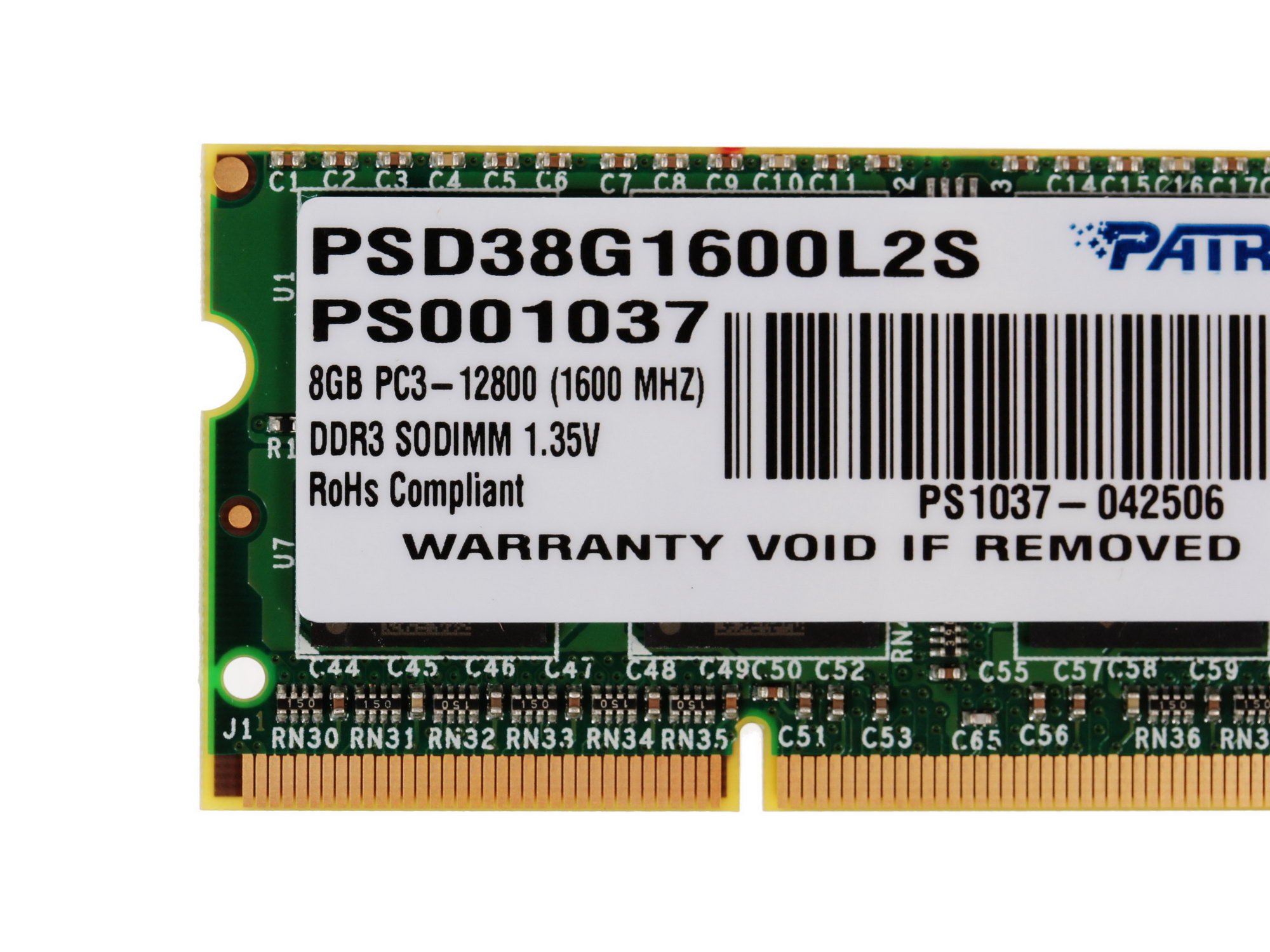 Оперативная память Patriot, DDR3L, 8Gb (1x8 GB), 1600 MHz, CL11, SO-DIMM
