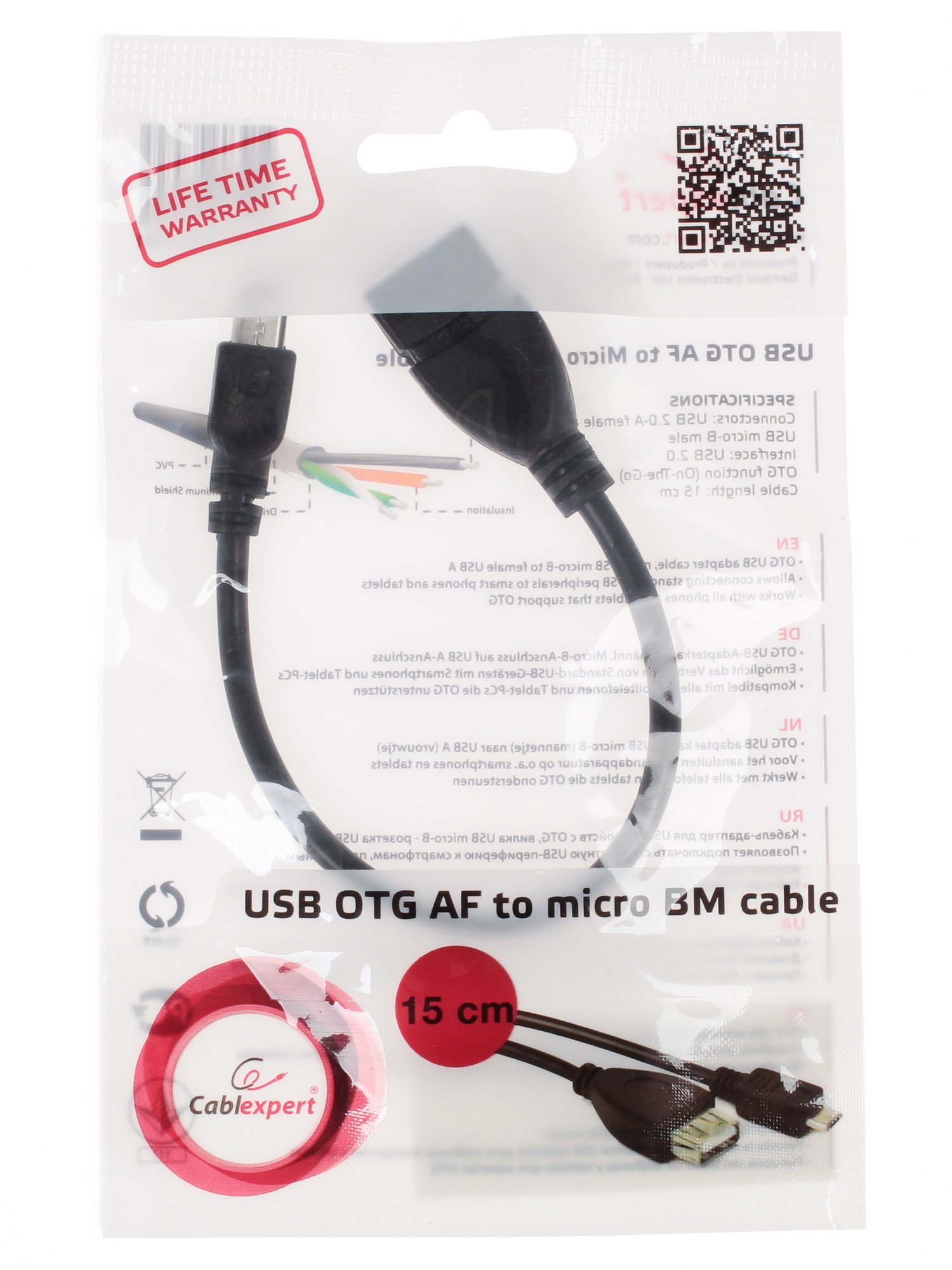 Адаптер универсален, поэтому он может соединить любой смартфон с любым совместимым с ним периферийным устройством с функцией USB On-The-Go. Короткий, черный кабель Cablexpert компактен, поэтому его всегда можно взять с собой.