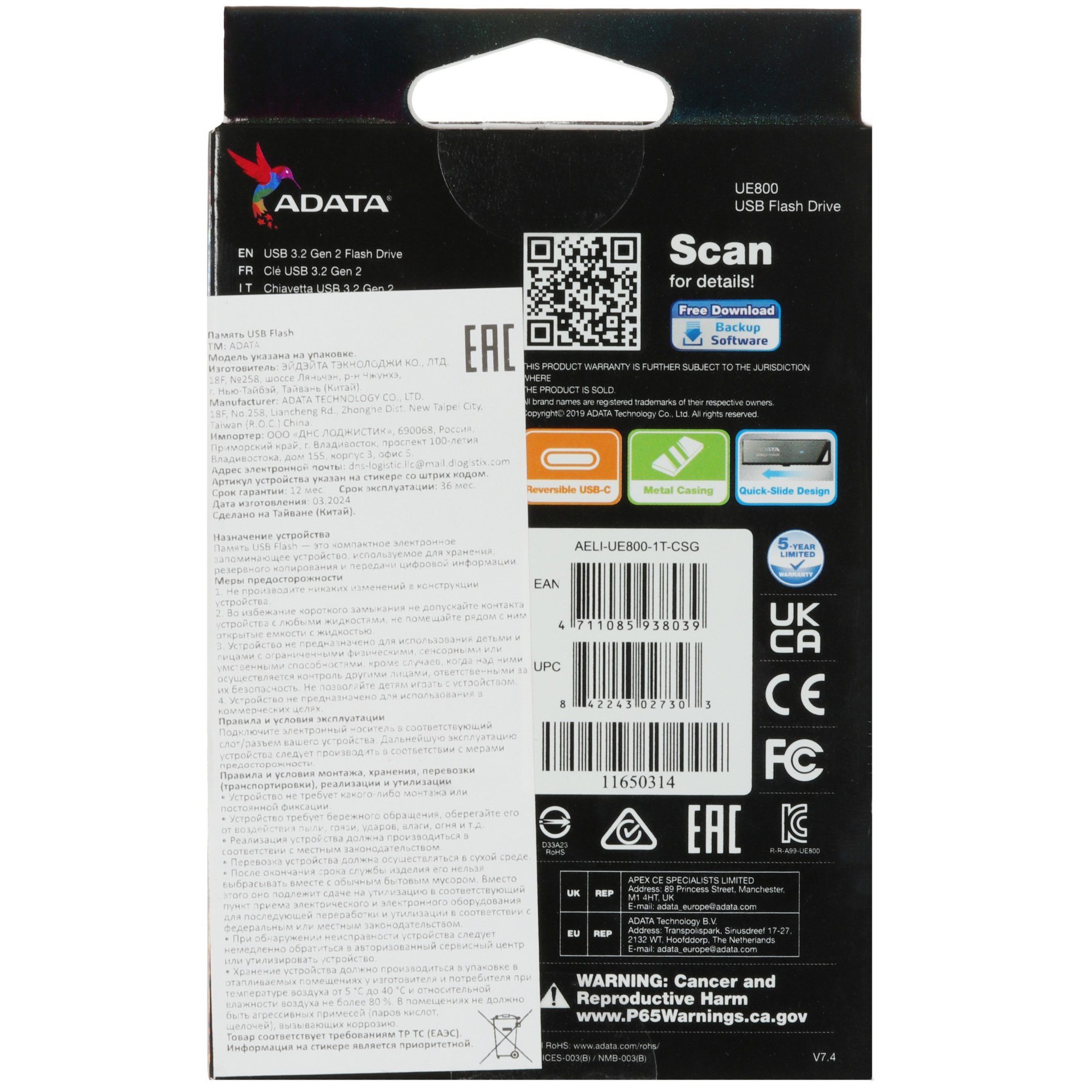 ADATA Elite UE800 поддерживает стандарт USB 3.2 Gen2. Он повышает скорость передачи данных до 1000 Мбайт/сек, что помогает избежать задержек. Объем 1024 ГБ делает накопитель удобным решением для хранения коллекций фильмов, плейлистов с музыкой, архивов с документами и фотографиями. Флешку можно повесить на брелок и пристегнуть к замку на рюкзаке или сумке.