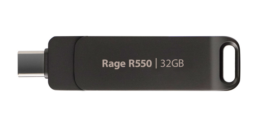 Память OTG USB Flash 32 ГБ Patriot Rage R550 [PE32GR550DSAD] – флеш-накопитель в металлическом корпусе с поворотной конструкцией. Устройство совместимо с планшетными компьютерами и смартфонами с поддержкой технологии OTG.