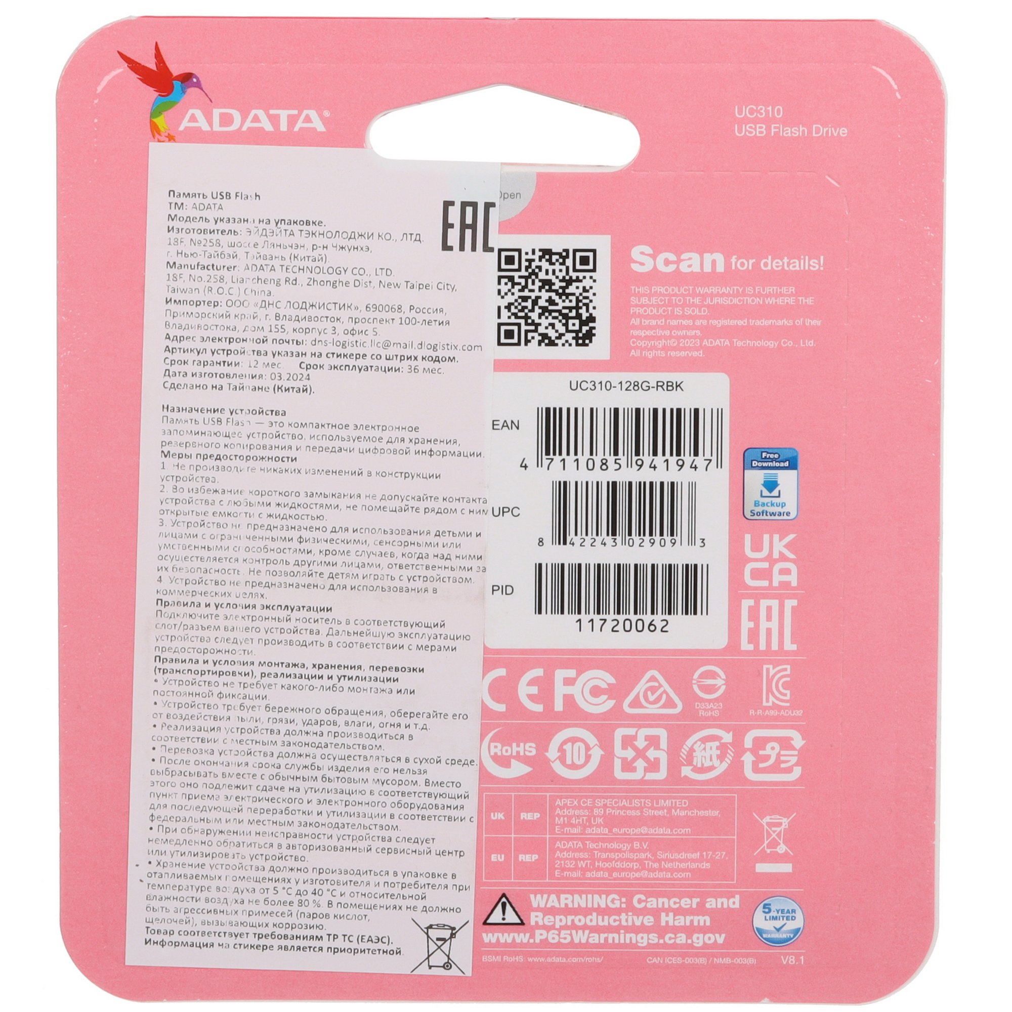 Память USB Flash A-Data UC310 обеспечит пользователя 128 ГБ свободной памяти для хранения файлов, которые нужно всегда иметь под рукой. Модель поддерживает стандарт USB 3.2 Gen 1, благодаря которому скорость чтения данных может достигать 100 Мбайт/сек. Для подключения память USB Flash A-Data UC310 использует штекер USB Type-A, что делает ее совместимой с большинством цифровых устройств. Флешка имеет поворотную конструкцию пластикового корпуса для защиты разъема от механических повреждений при хранении.