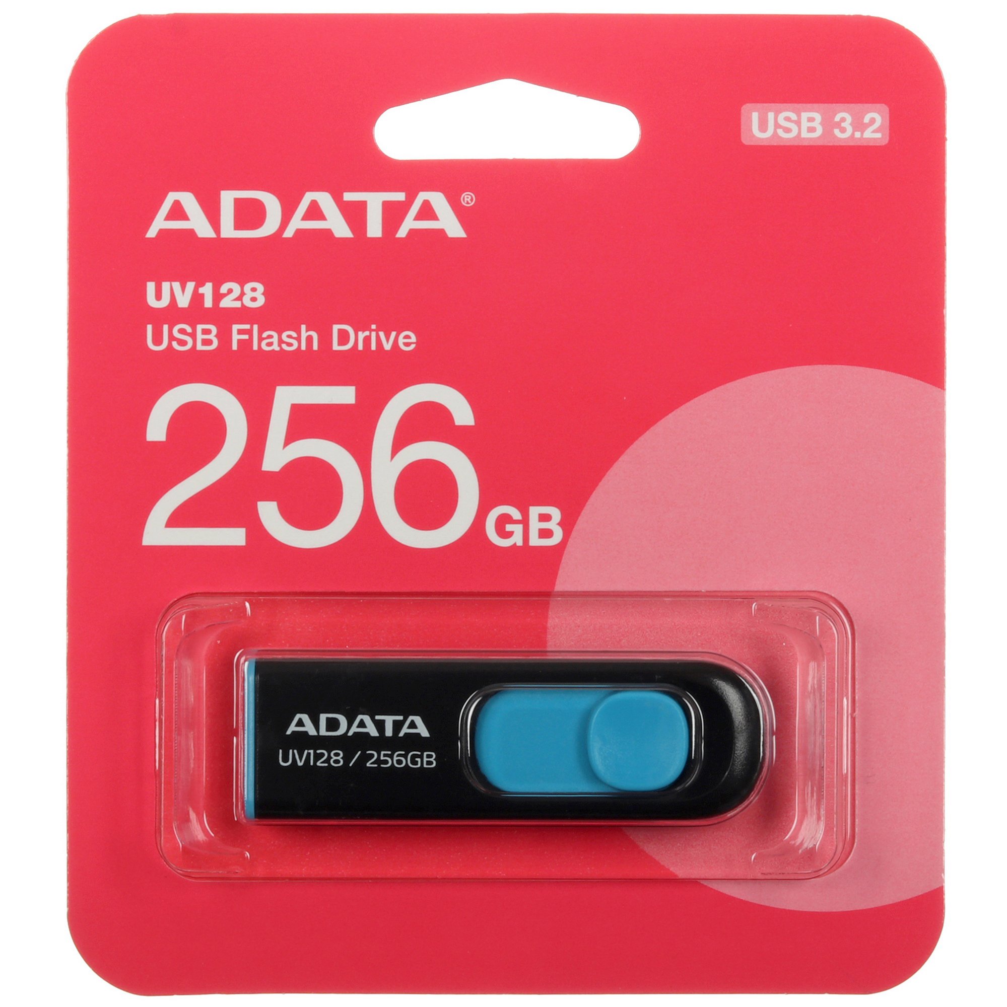 Память USB Flash 256 ГБ ADATA UV128 выполнена в черном корпусе в виде слайдера. Возможность прятать выдвижной разъем внутри пластикового корпуса защищает его от пыли и повреждений при хранении и транспортировке. Устройство дополнено отверстием для крепления на цепочку или брелок.