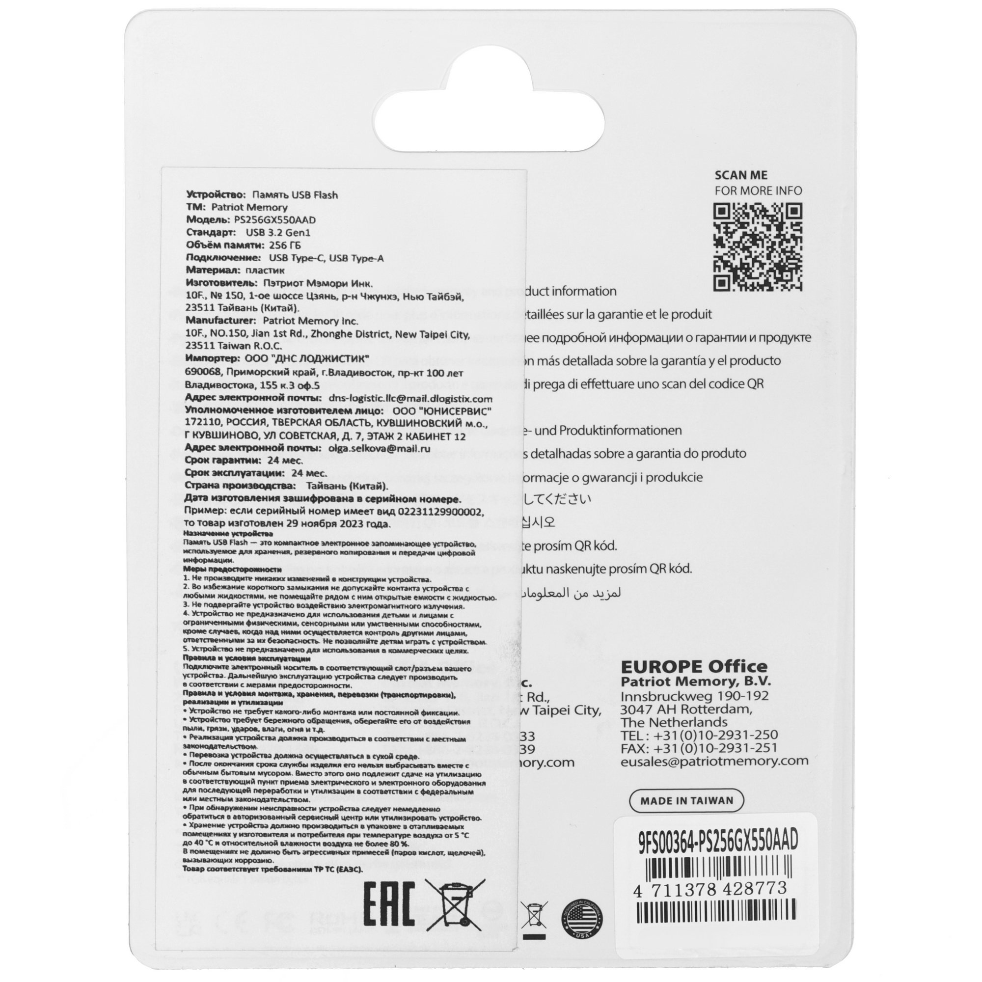 Память USB Flash 256 ГБ Patriot Xropter X550 [PS256GX550AAD] – флеш-накопитель для хранения и перемещения данных. Устройство с объемом 256 ГБ подключается к компьютерам, бытовой технике, автомагнитолам и другому оборудованию. Соединение производится с использованием интерфейсов USB Type-A и USB Type-C. Память USB Flash 256 ГБ Patriot Xropter X550 [PS256GX550AAD] в пластиковом поворотном корпусе соответствует стандарту USB 3.2 Gen 1 и обеспечивает скорость чтения до 80 МБ/с.