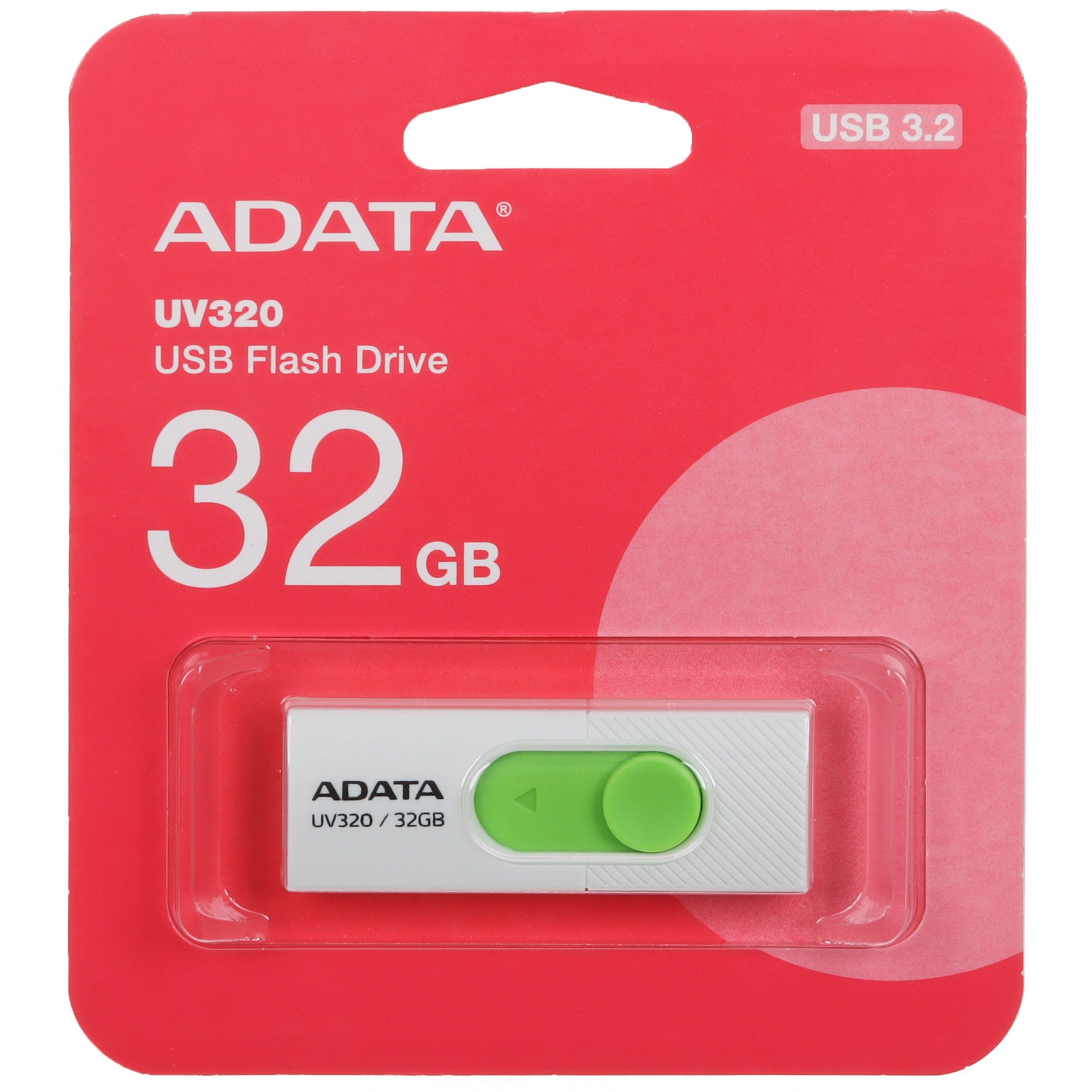 Флешка USB ADATA UV320 (AUV320-32G-RWHGN), 32Gb, USB 3.2, R/W 100/30, белый/зеленый