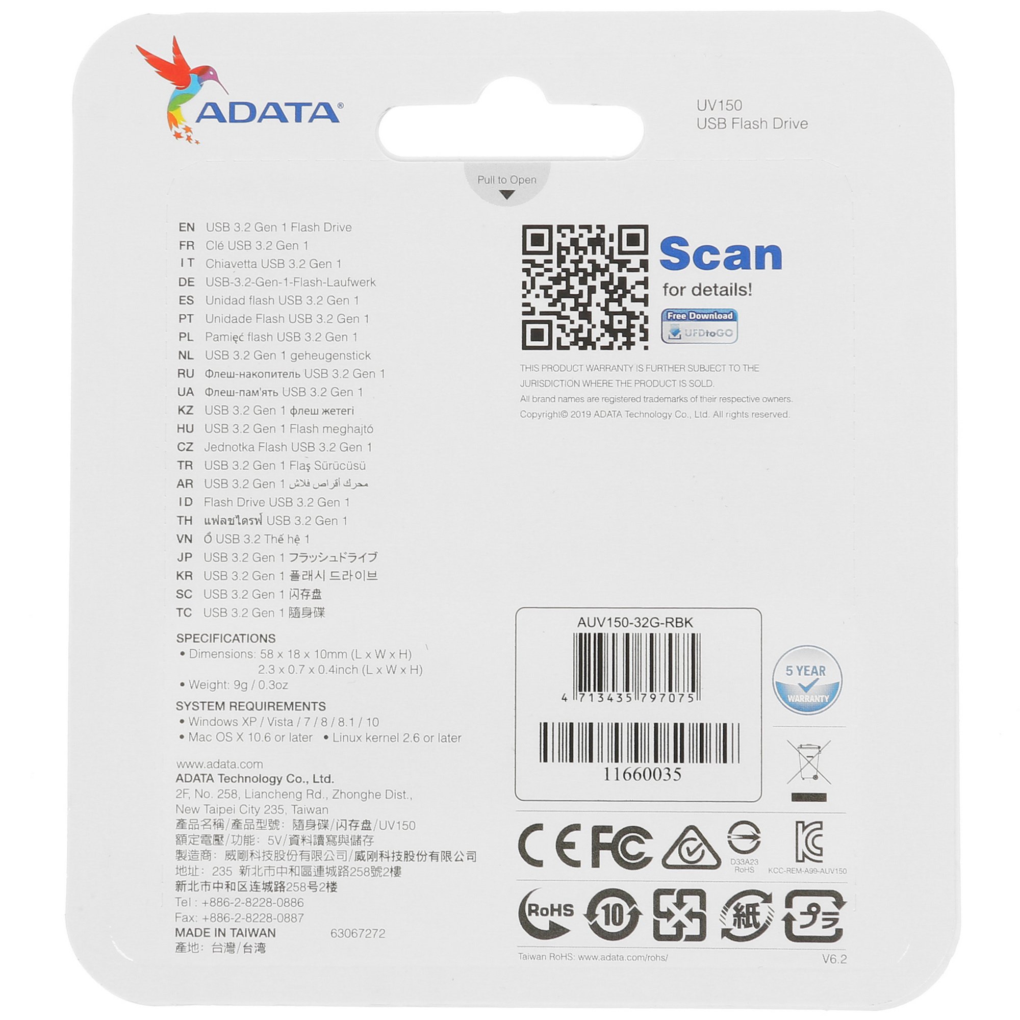 Память USB Flash A-Data UV150 [AUV150-32G-RBK] в черном пластиковом корпусе обладает объемом 32 ГБ. Этого достаточно, чтобы хранить большое количество документов, аудио- и видеофайлов. При этом доступ к ним можно получить с любого компьютера или лэптопа без выхода в интернет. В основании корпуса накопителя памяти USB Flash A-Data UV150 [AUV150-32G-RBK] предусмотрено колечко для крепления аксессуара на ключах или в сумке. За счет этого потерять миниатюрное изделие практически нереально. Универсальный интерфейс подключения защищен пластиковым колпачком.