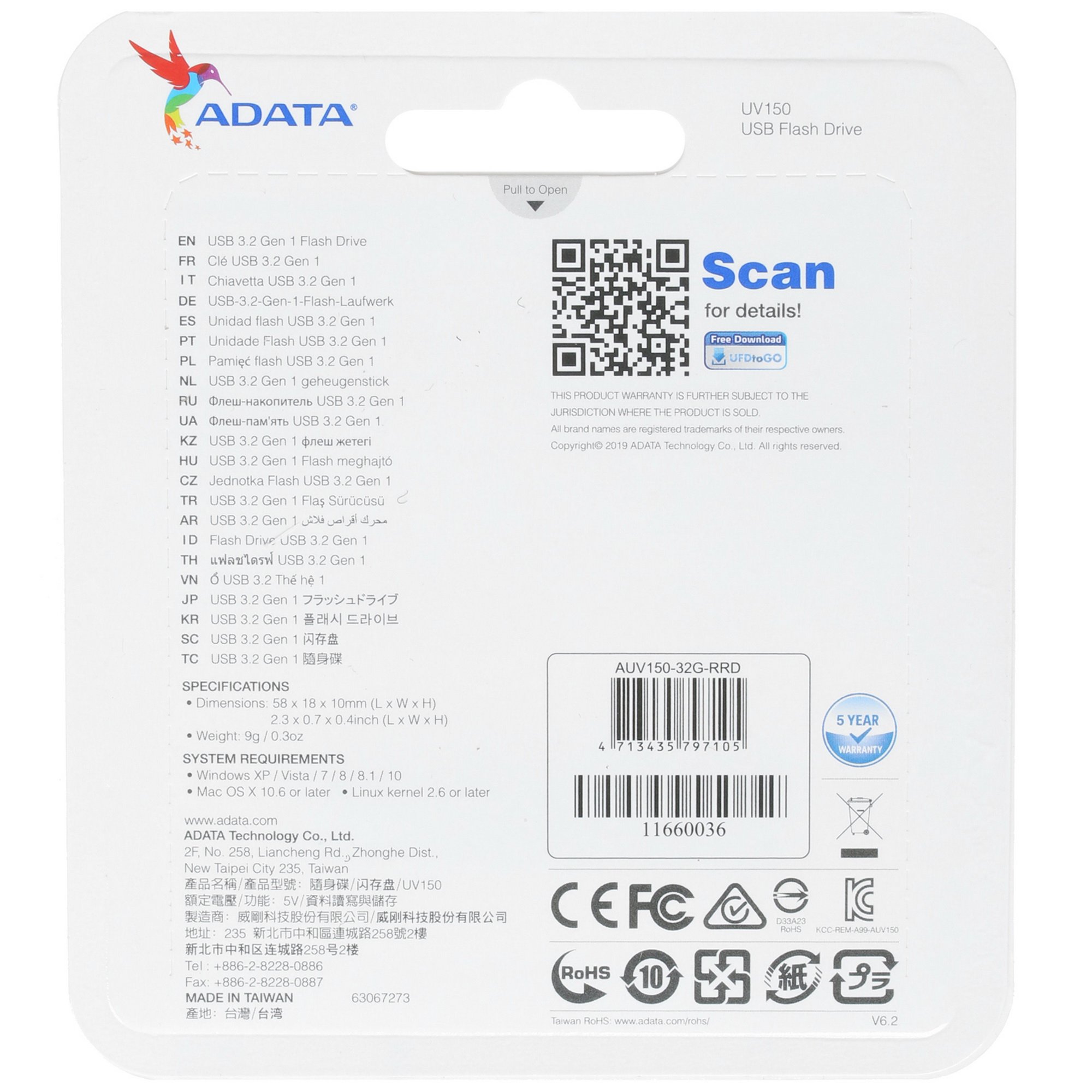 Память USB Flash A-Dаta UV150 [AUV150-32G-RRD] объемом 32 ГБ облачена в пластиковый красный корпус. Благодаря такой яркой расцветке аксессуар точно не потеряется в сумочке или ящике рабочего стола. При этом накопитель способен хранить большое количество документов, аудио- и видеофайлов в своем миниатюрном корпусе и предоставлять к ним доступ с компьютера без выхода в интернет. Интерфейс подключения накопителя памяти USB Flash A-DAta UV150 [AUV150-32G-RRD] защищен колпачком. Модель универсальна в использовании, так как имеет общеупотребимый разъем подключения USB Type-A.