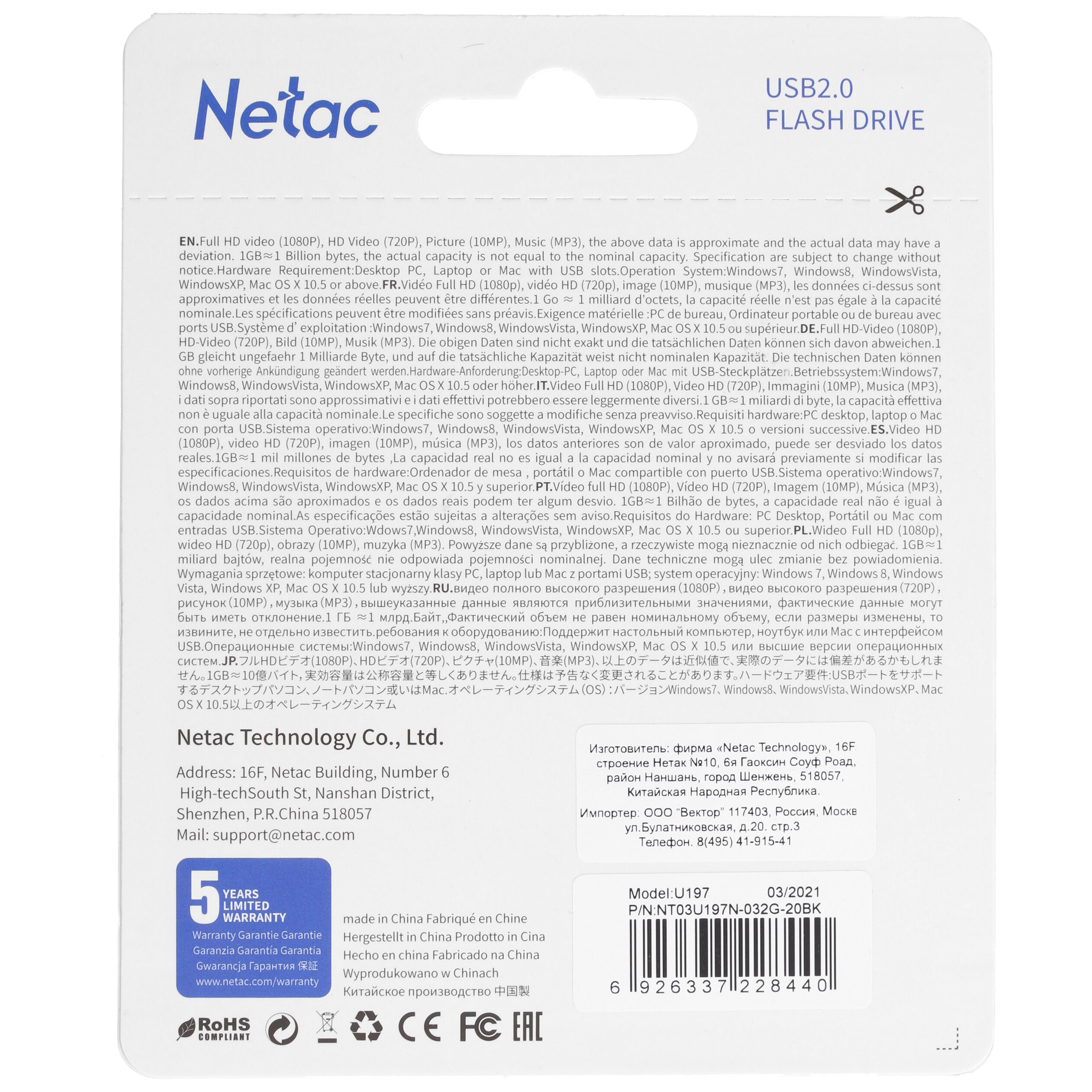 Флешка USB Netac U197 32Gb <NT03U197N-032G-20BK>, USB 2.0