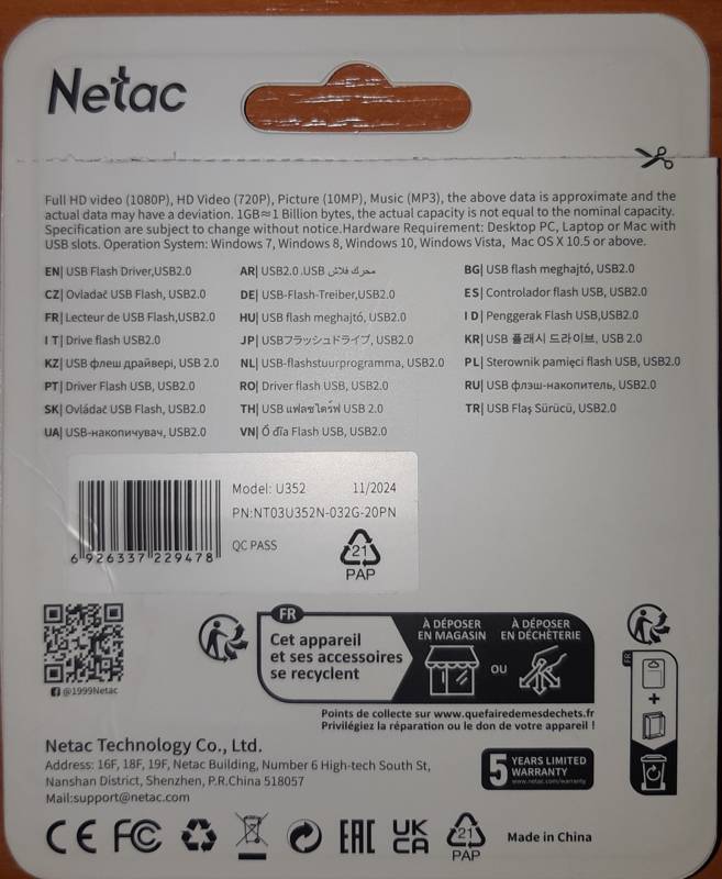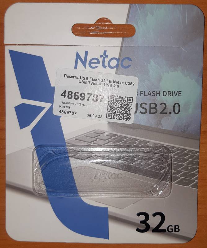 Флешка USB Netac U352 NT03U352N-032G-20PN USB 2.0 32Gb, retail version