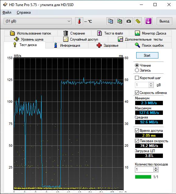 Флешка USB ADATA UV128 (AUV128-64G-RBE), 64Gb, USB 3.0, R/W 100/30, черный/синий