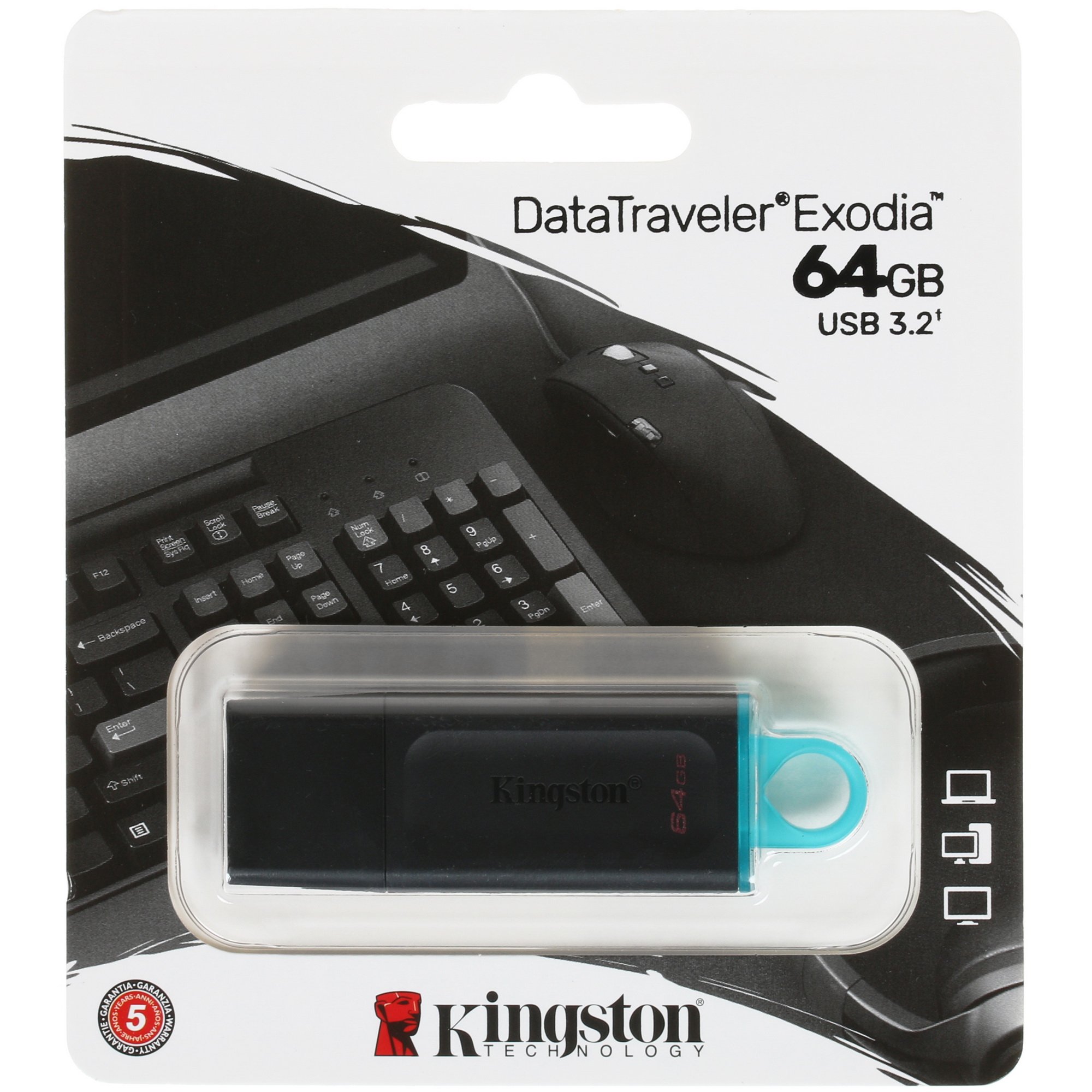Флешка USB Kingston 64Gb USB 3.2 Gen 1 DataTraveler Exodia черный/бирюзовый