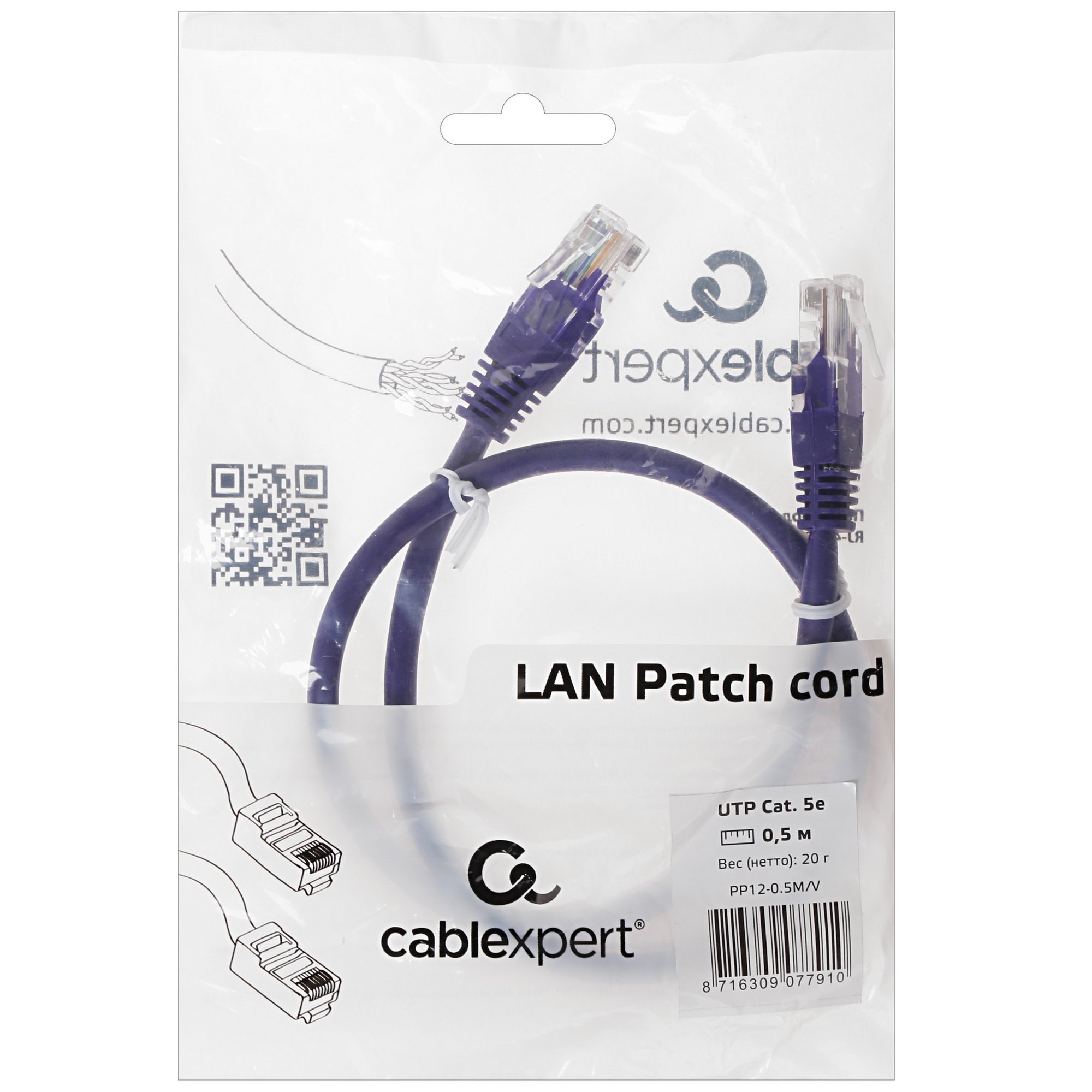 Патч-корд UTP Cablexpert кат.5e, 0.5м, литой, многожильный, фиолетовый
